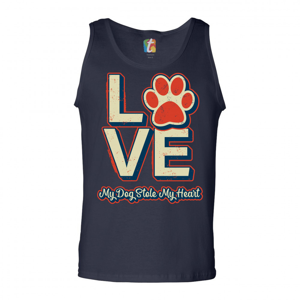 DOG PAW LOVE tank top my dog stole my heart pet owner animal lover men's top navy blue