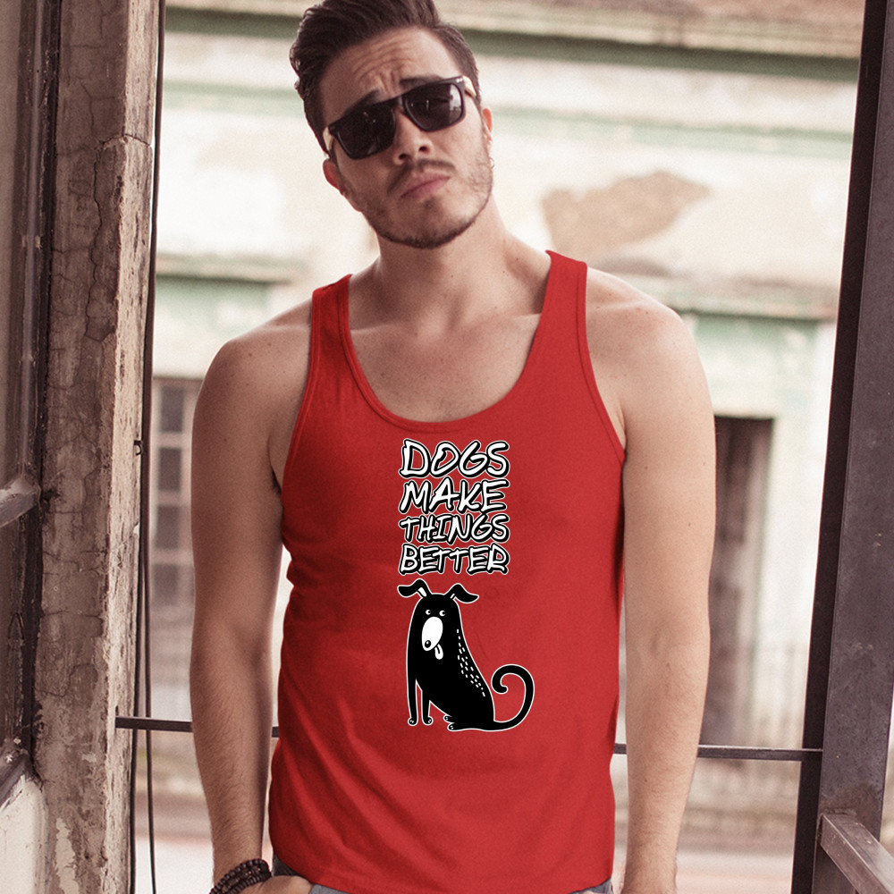 DOGS MAKE THINGS BETTER tank top animal pet owner i love my dog men's top red