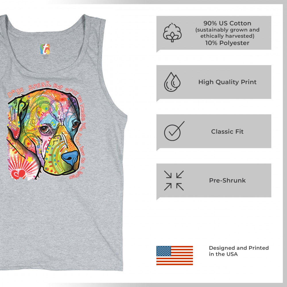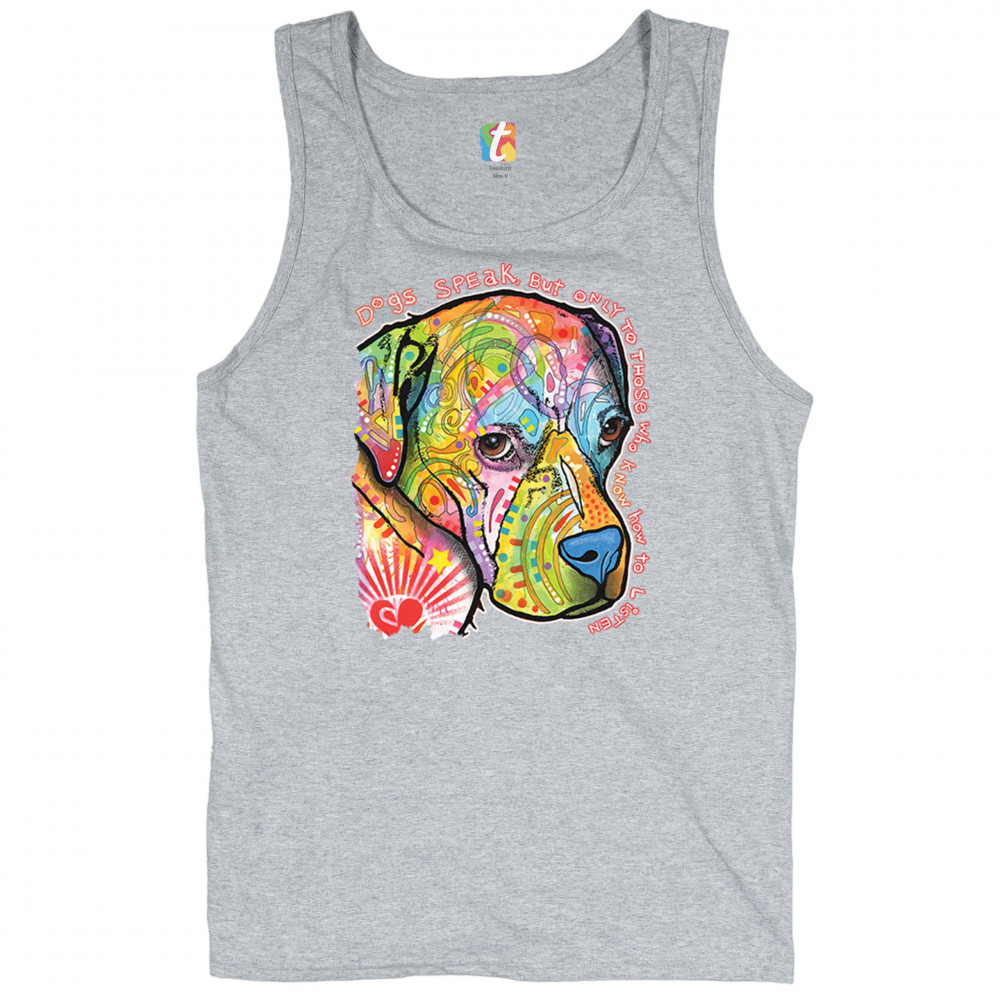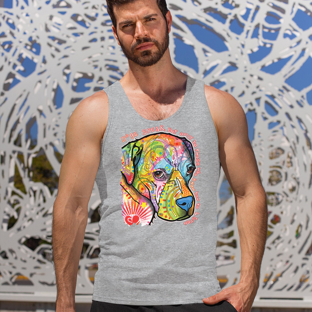 DOGS SPEAK TO THOSE WHO LISTEN tank top dean russo neon pet puppy men's top gray