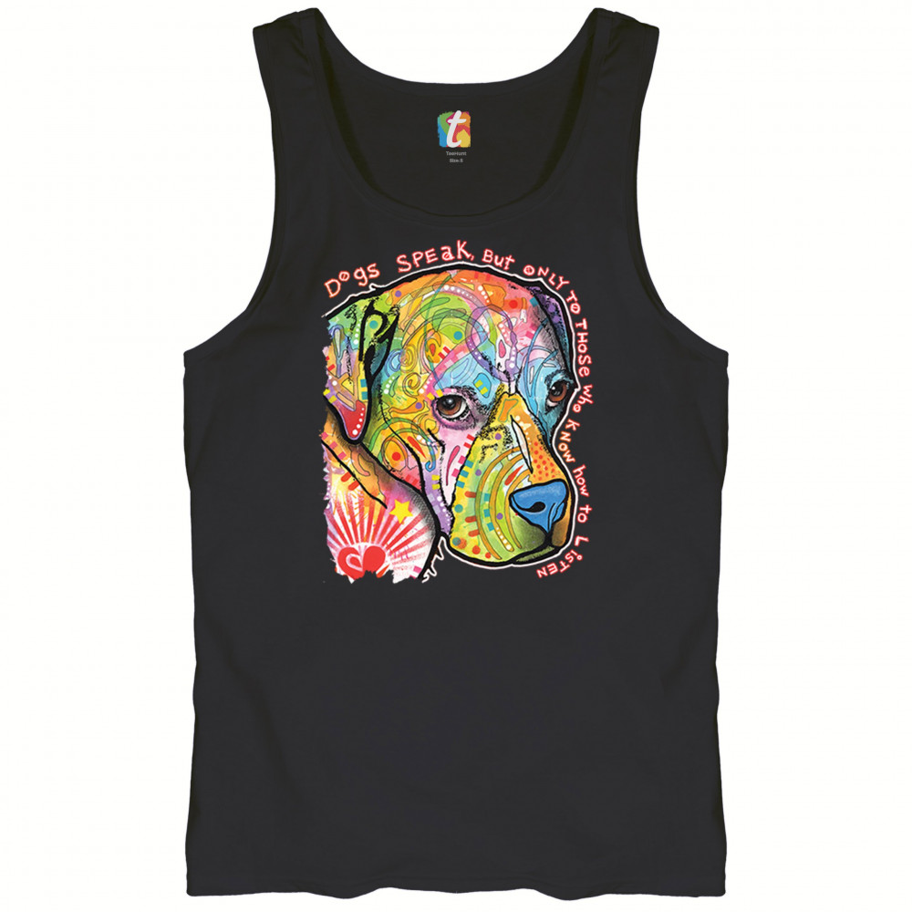 DOGS SPEAK TO THOSE WHO LISTEN tank top dean russo neon pet puppy men's top black