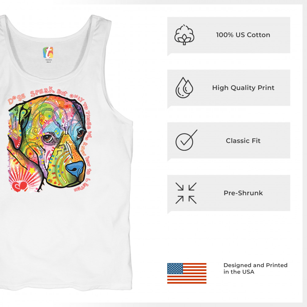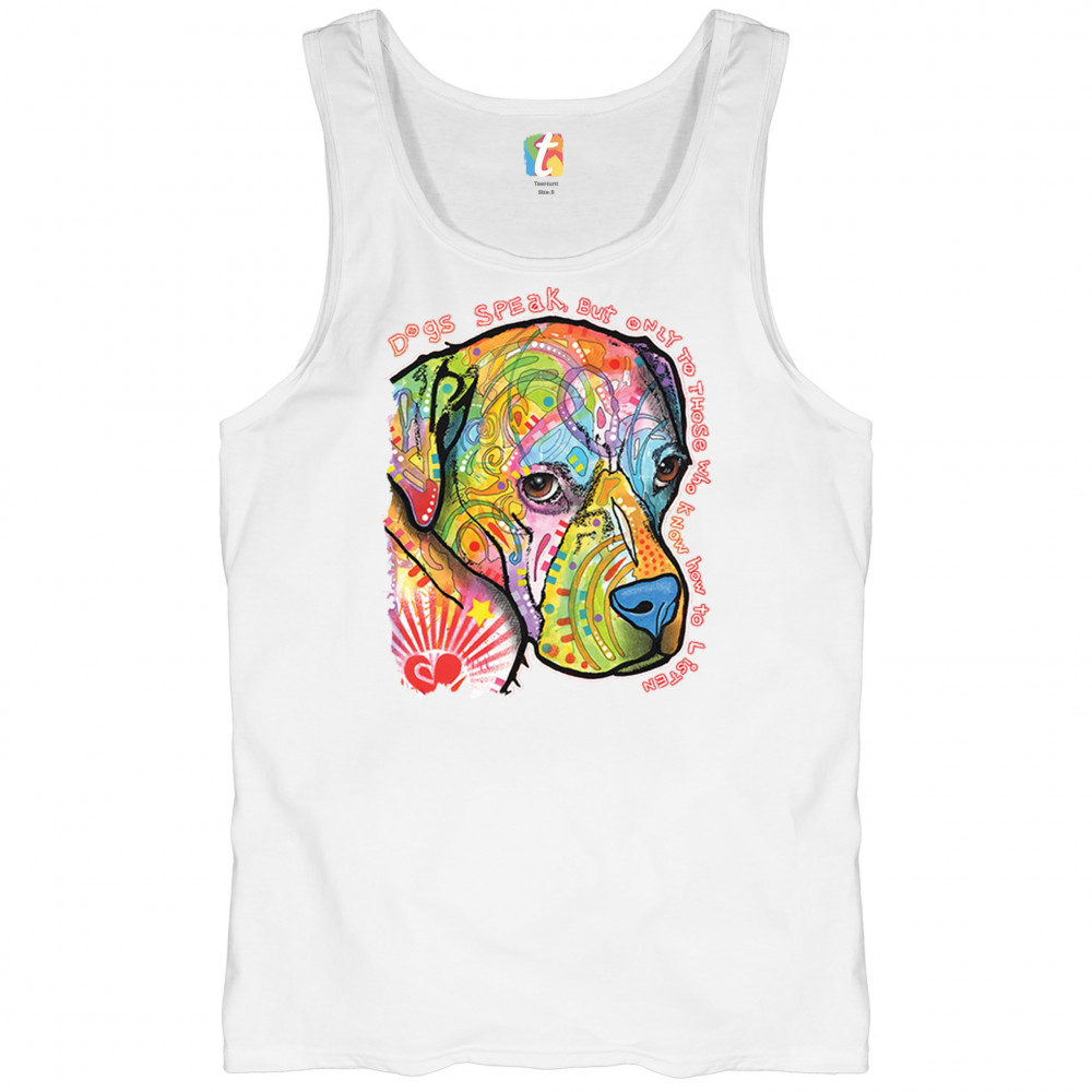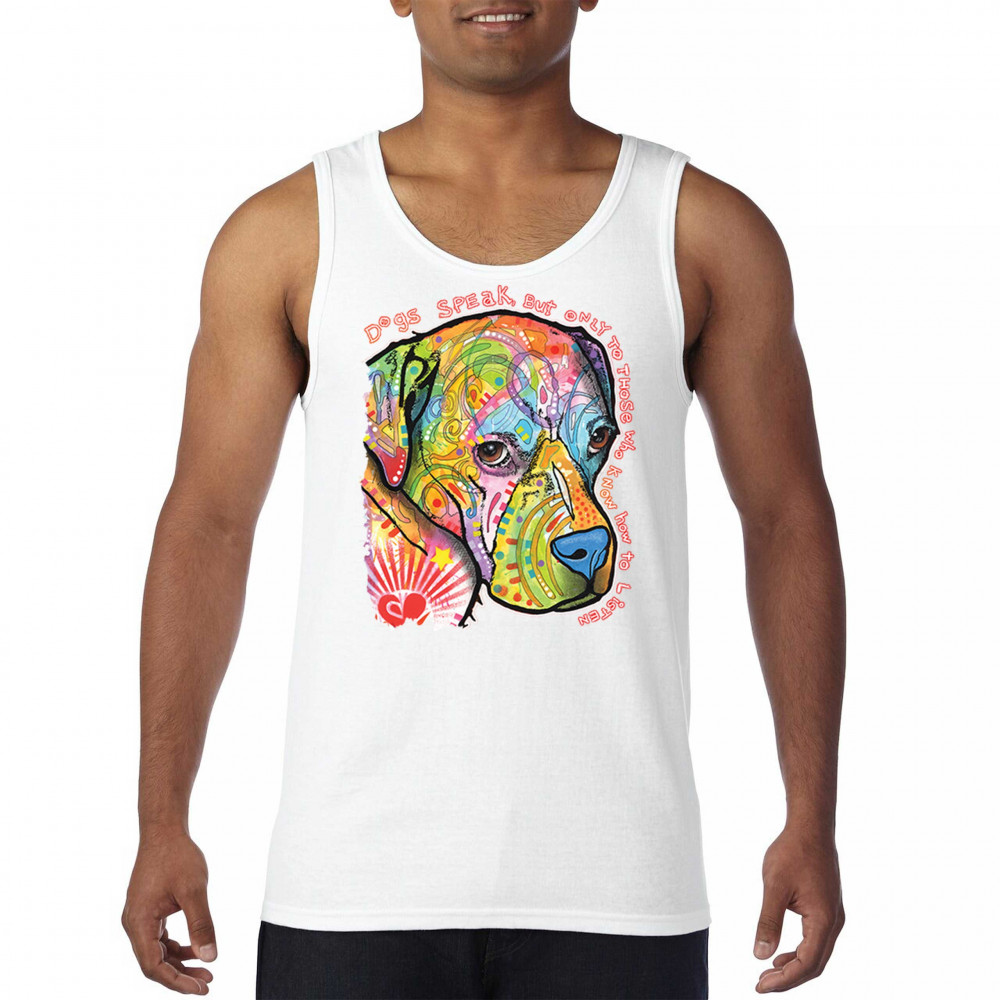 DOGS SPEAK TO THOSE WHO LISTEN tank top dean russo neon pet puppy men's top white