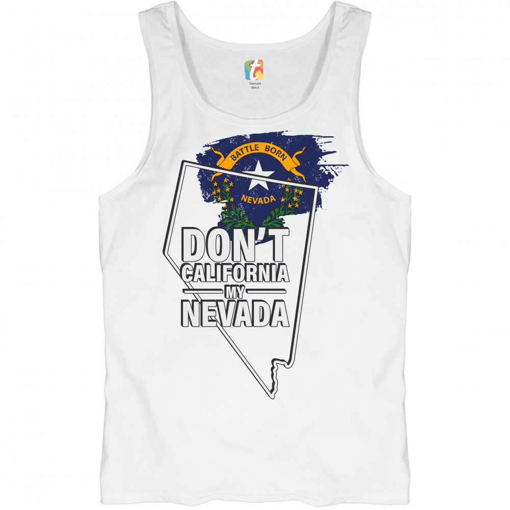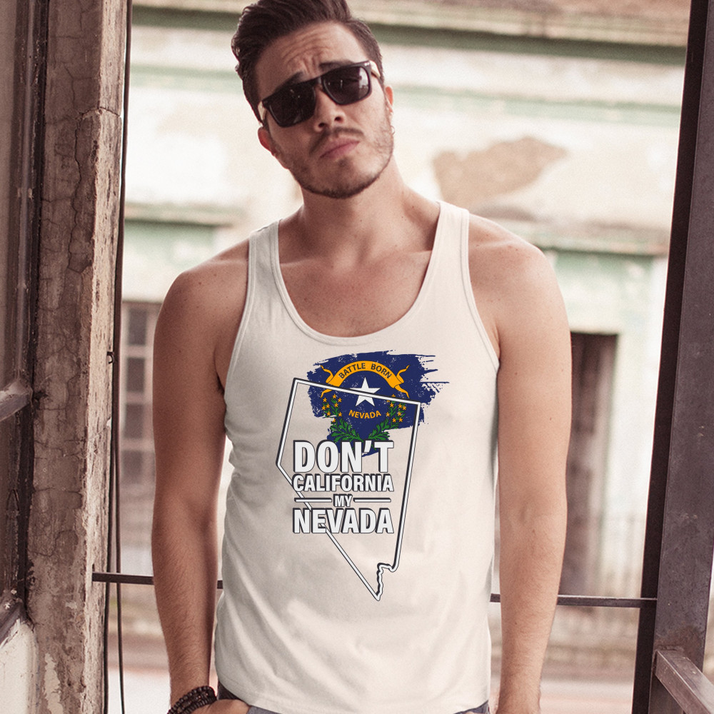 A political print featuring a silhouette of the state of Nevada and it's flag on the inside. The print says: "Don't California my Nevada". A great choice for anyone who is concerned for a huge number of Californians moving to their beloved state.