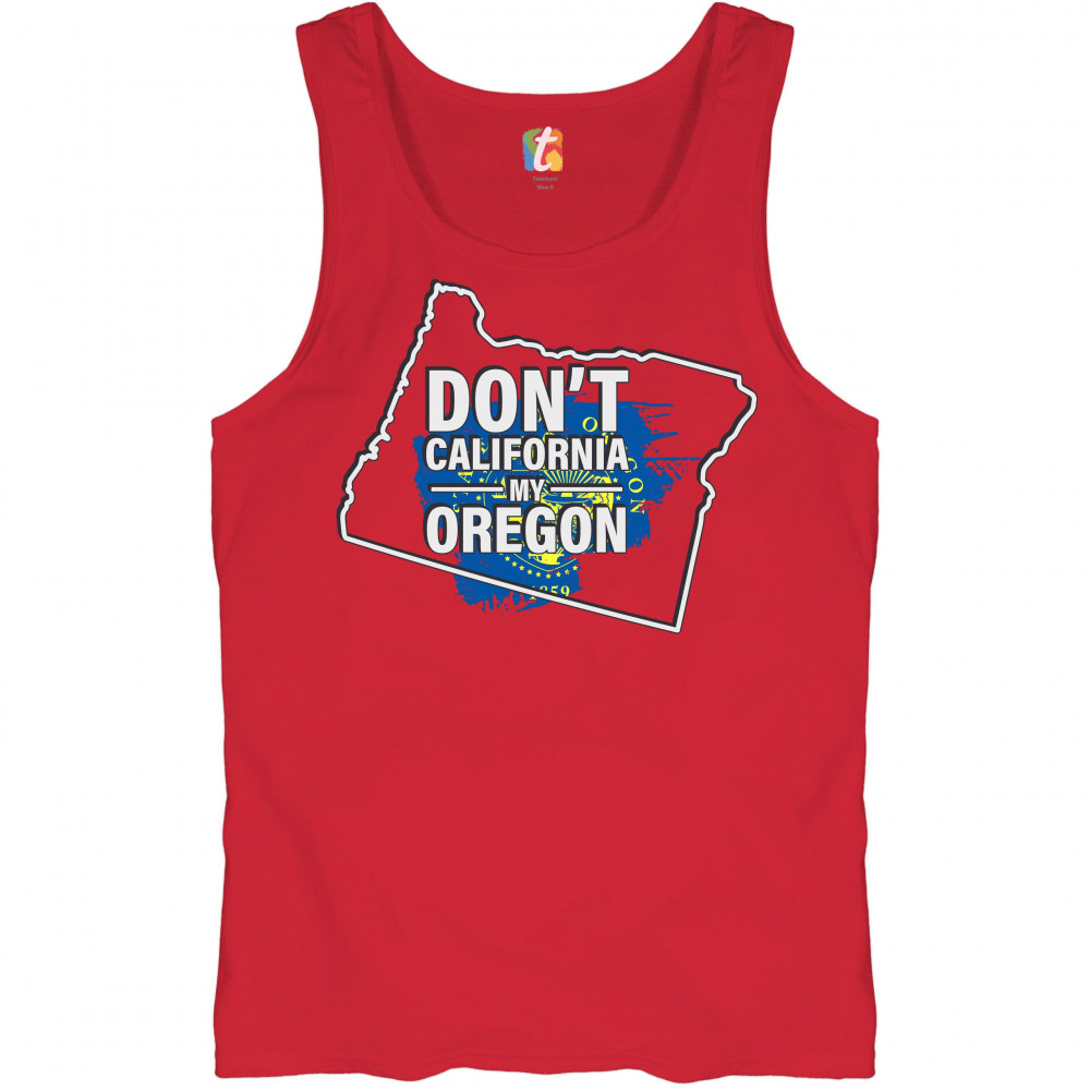 A political print featuring a silhouette of the state of Oregon and the Seal of the State of Oregon inside of it. The print says: "Don't California my Oregon". A great choice for anyone who is concerned for a huge number of Californians moving to their be