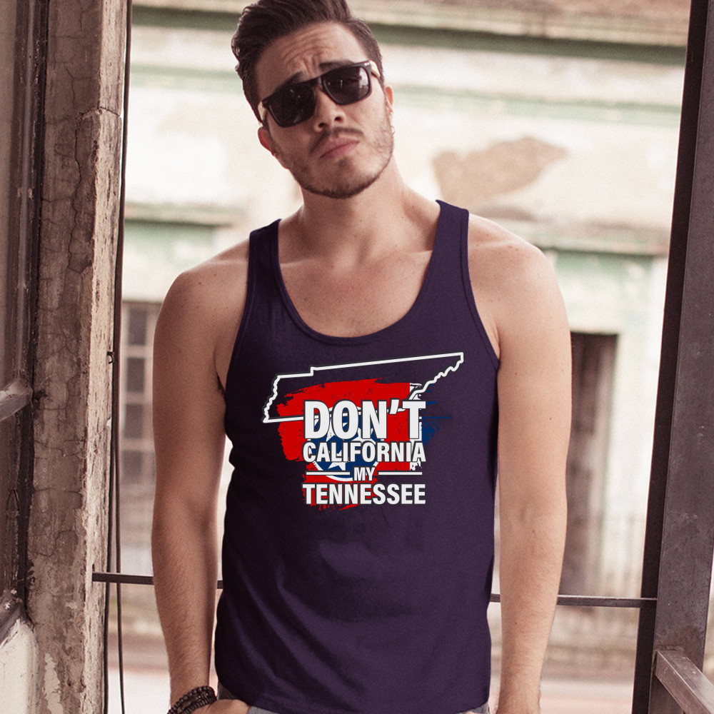 DON'T CALIFORNIA MY TENNESSEE tank top conservative republican men's top navy blue