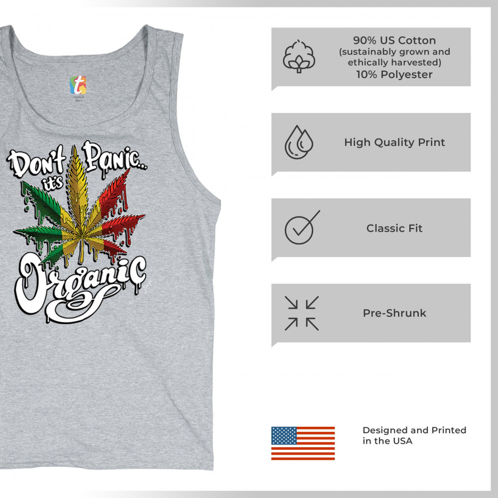 Stay cool and collected with our "Don't Panic...It's Organic" tee. Perfect for those who love life au naturel. It's more than a shirt—it's a lifestyle!