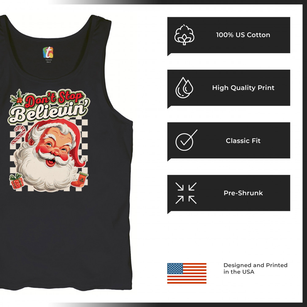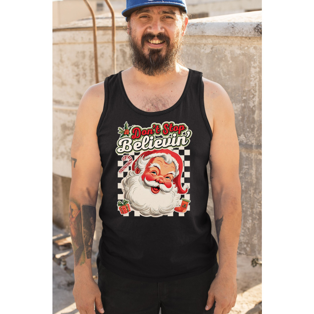 Spread holiday cheer with this “Don’t Stop Believing†Santa Claus shirt that blends classic Christmas spirit with cozy winter charm. Perfect for festive parties, family gatherings, or relaxing by the fire, this design captures Jingle Bells joy, Merry Xmas fun, Santa Claus magic, Reindeer delight, Rudolph glow, Snowman charm, and Christmas tree style for the perfect seasonal outfit.