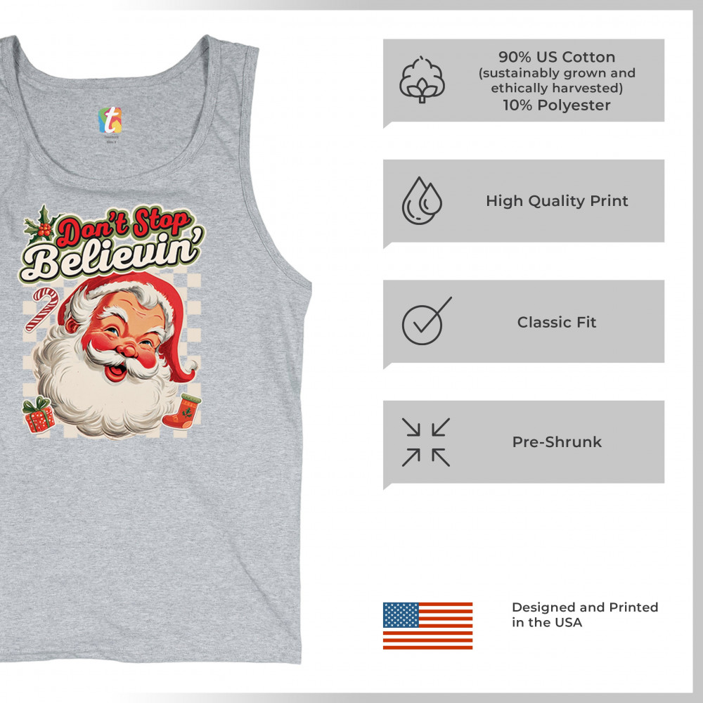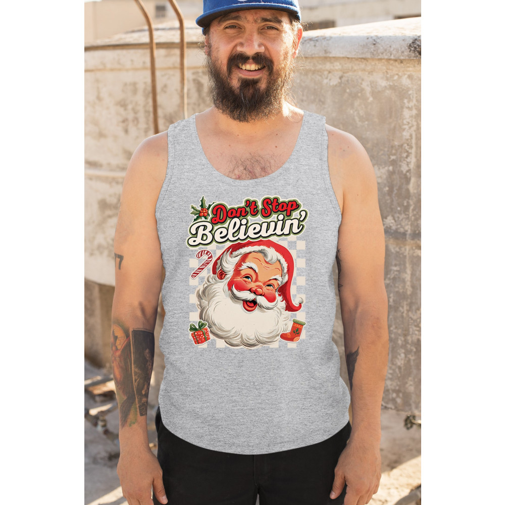 Spread holiday cheer with this “Don’t Stop Believing†Santa Claus shirt that blends classic Christmas spirit with cozy winter charm. Perfect for festive parties, family gatherings, or relaxing by the fire, this design captures Jingle Bells joy, Merry Xmas fun, Santa Claus magic, Reindeer delight, Rudolph glow, Snowman charm, and Christmas tree style for the perfect seasonal outfit.