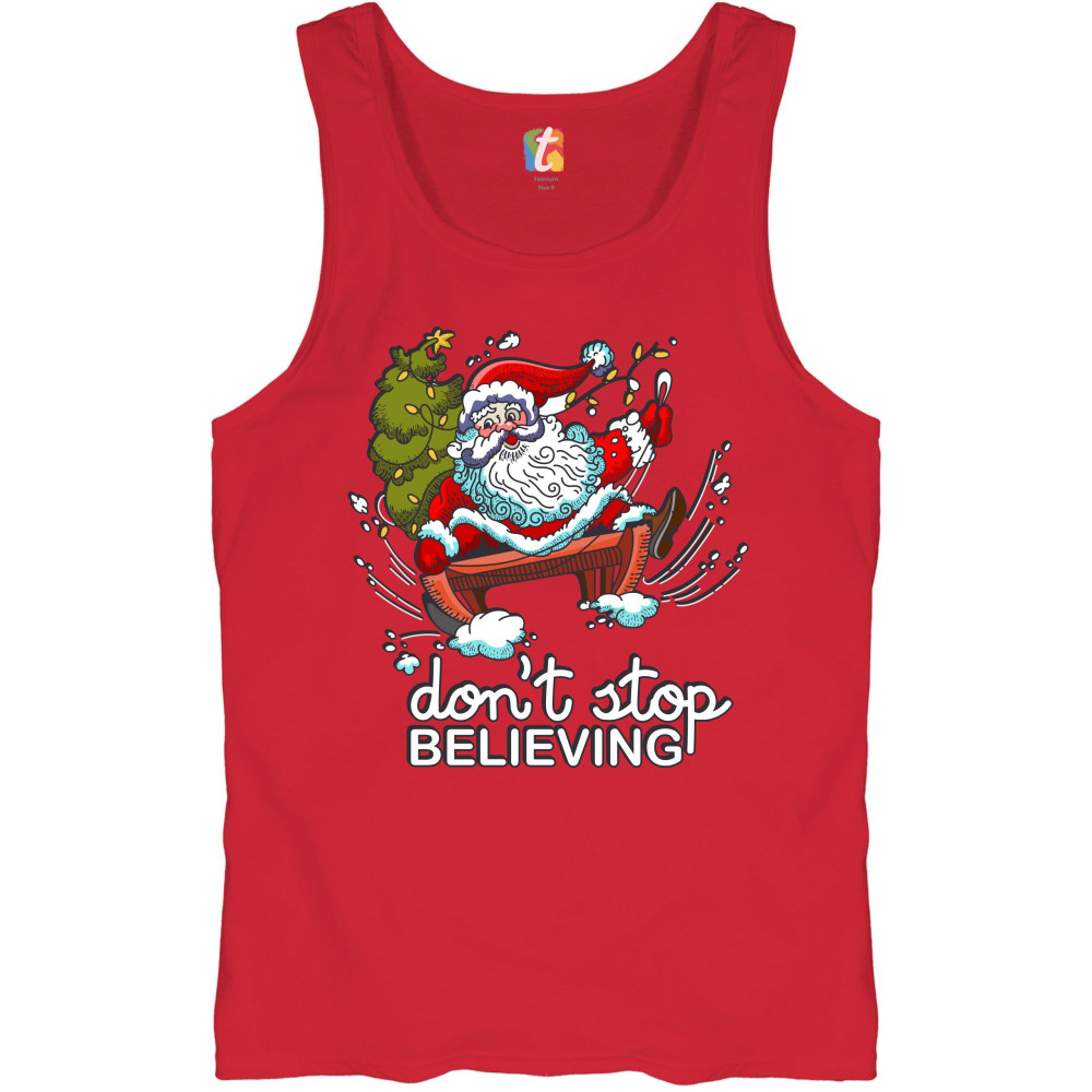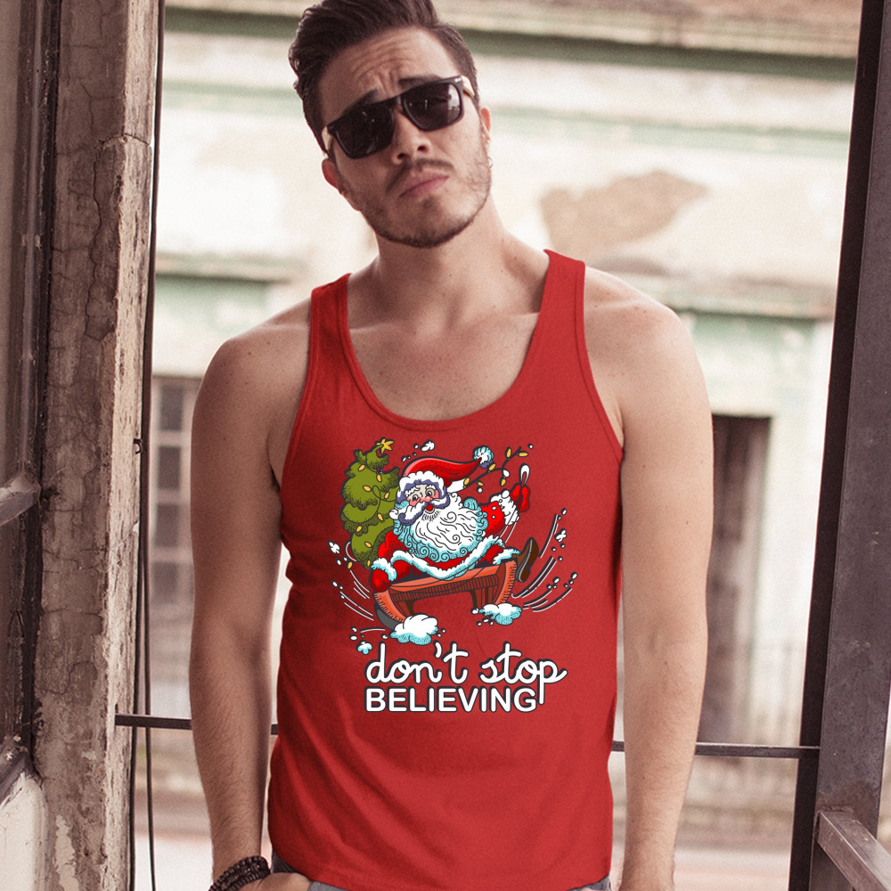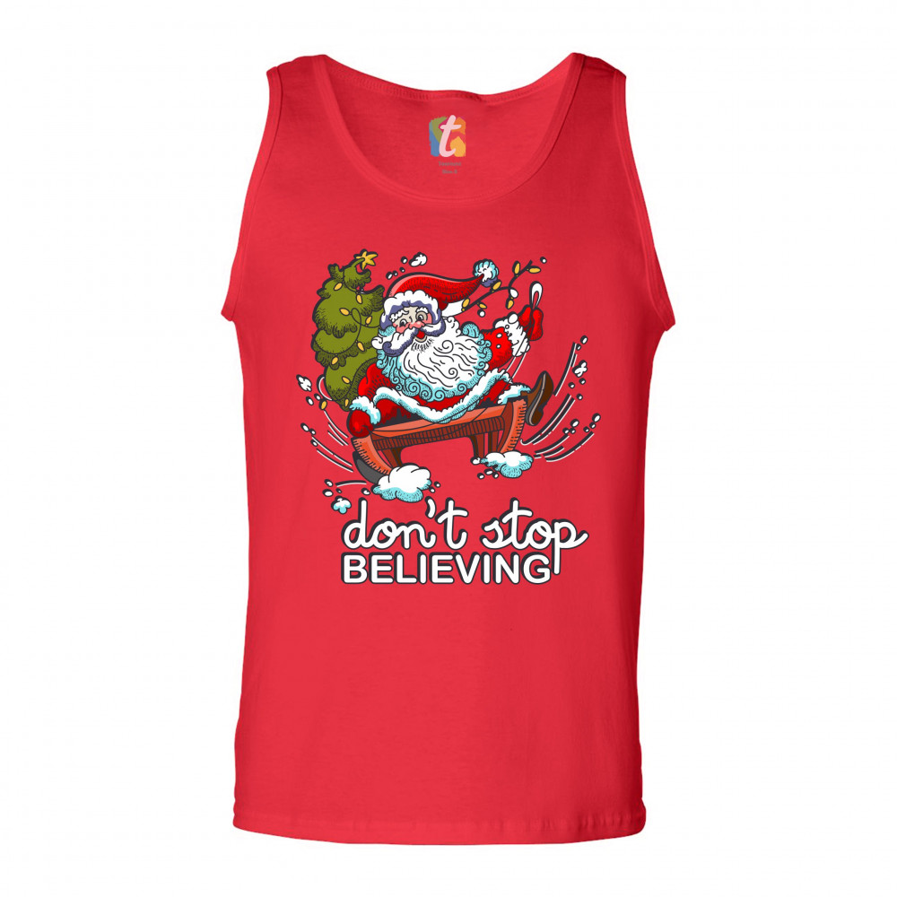 DON'T STOP BELIEVING tank top christmas holiday spirit santa claus men's top red