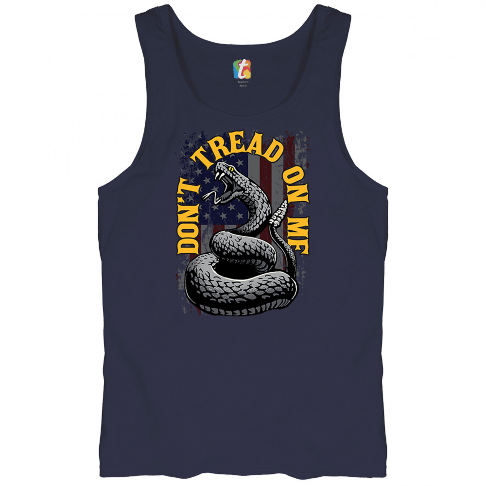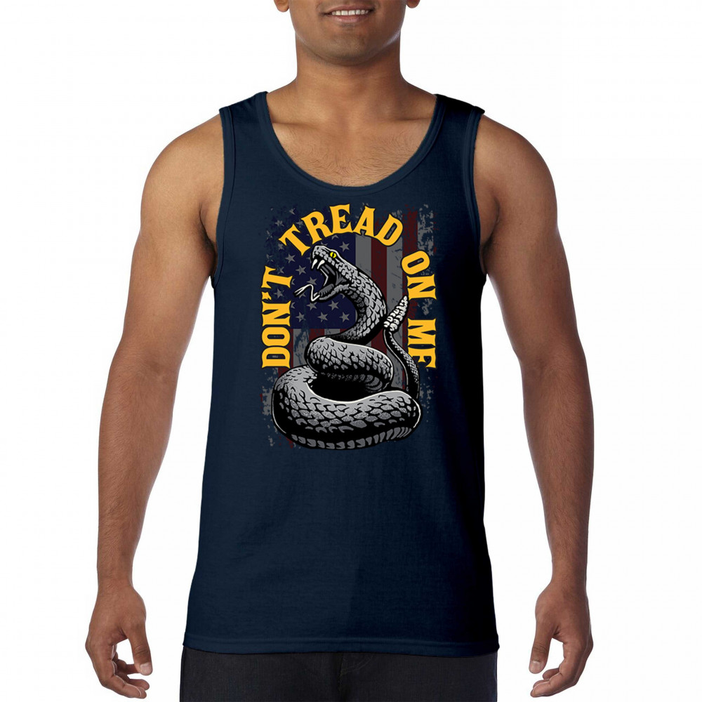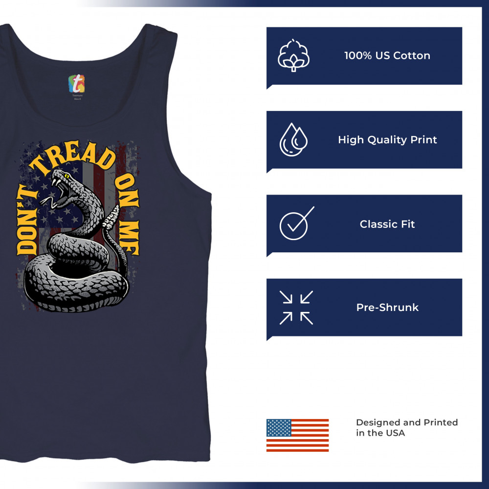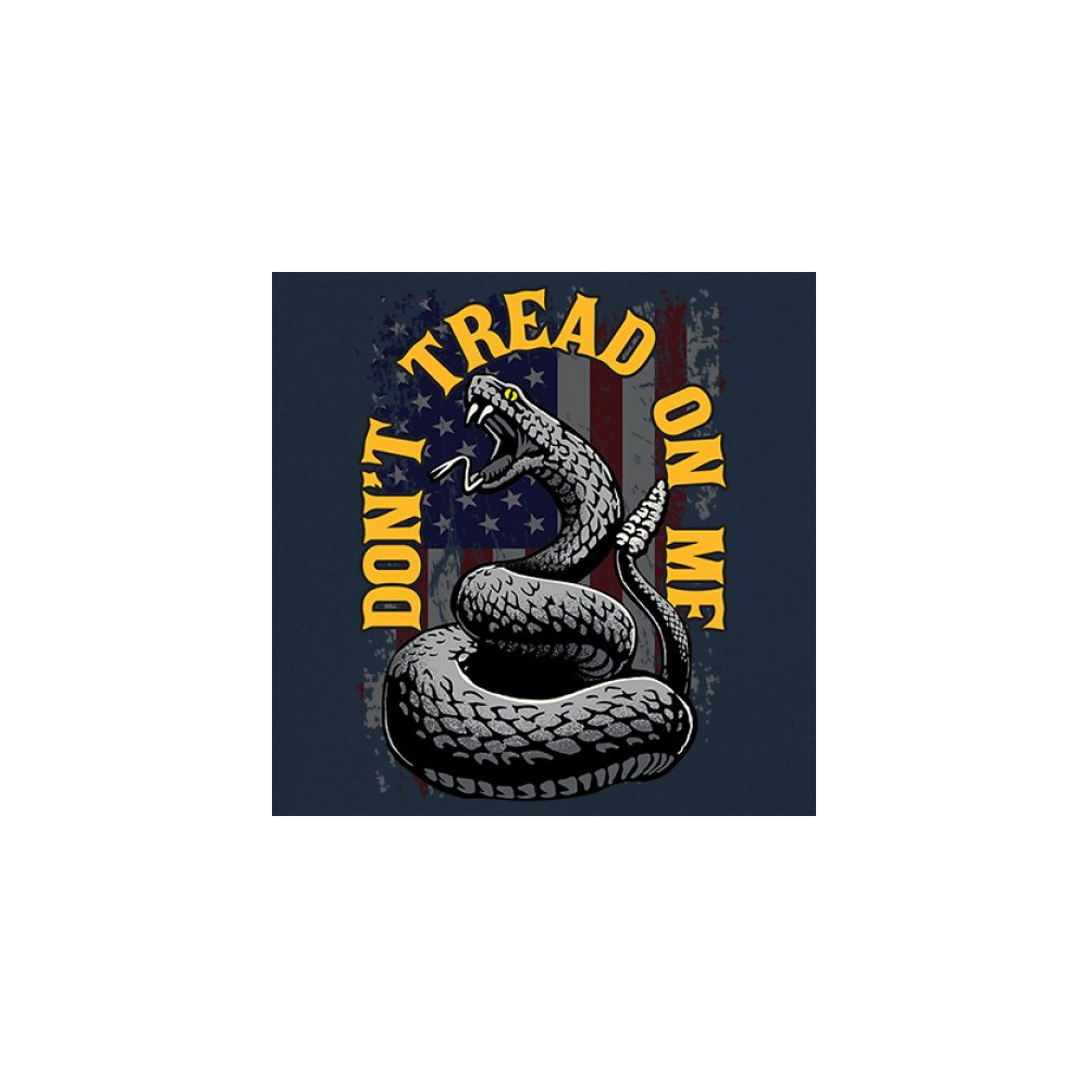 Bold "Don't Tread on Me" design with snake and American flag. Ideal for patriots. Show your love for freedom and independence.