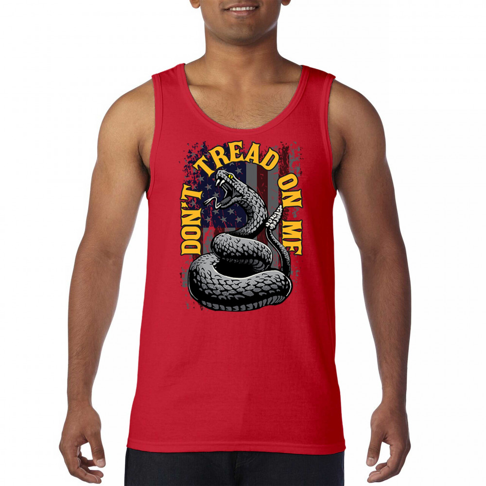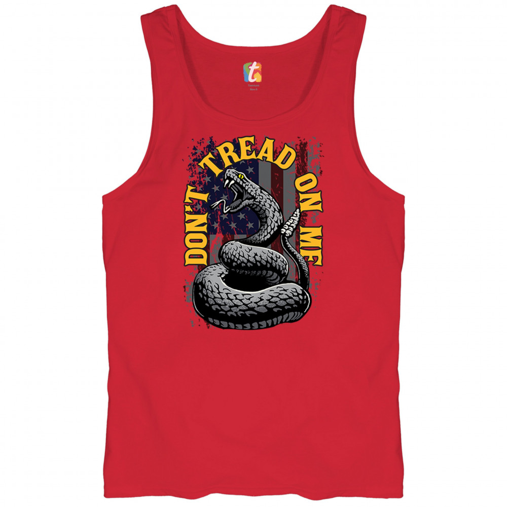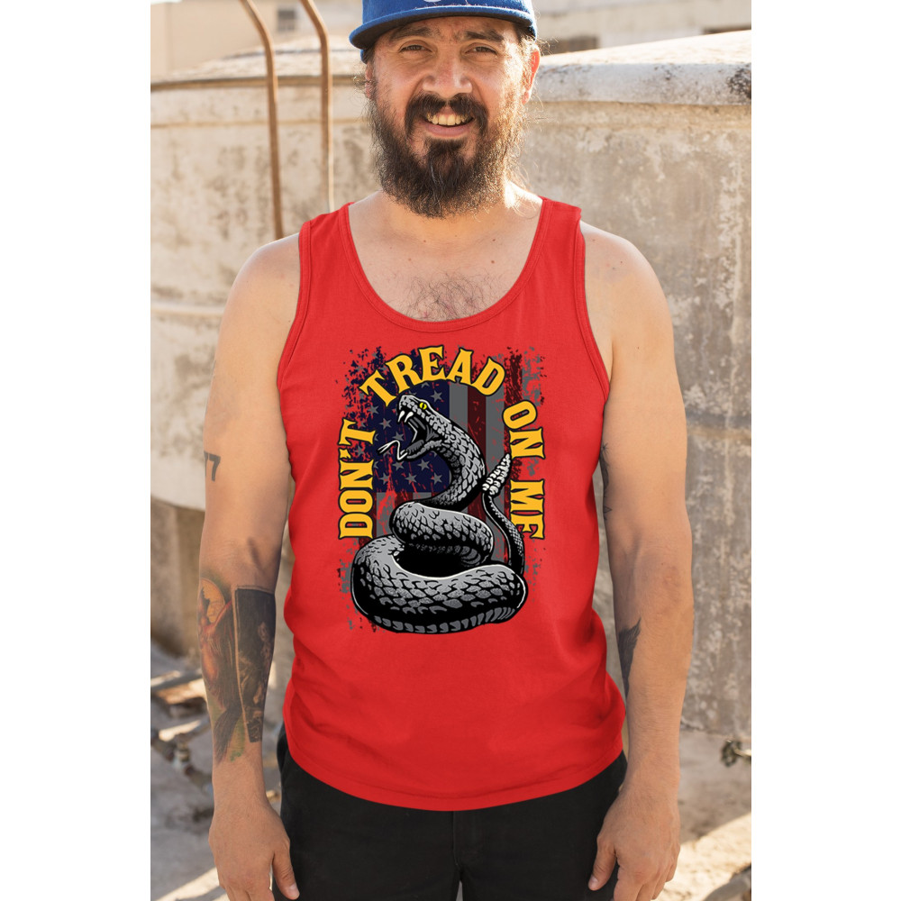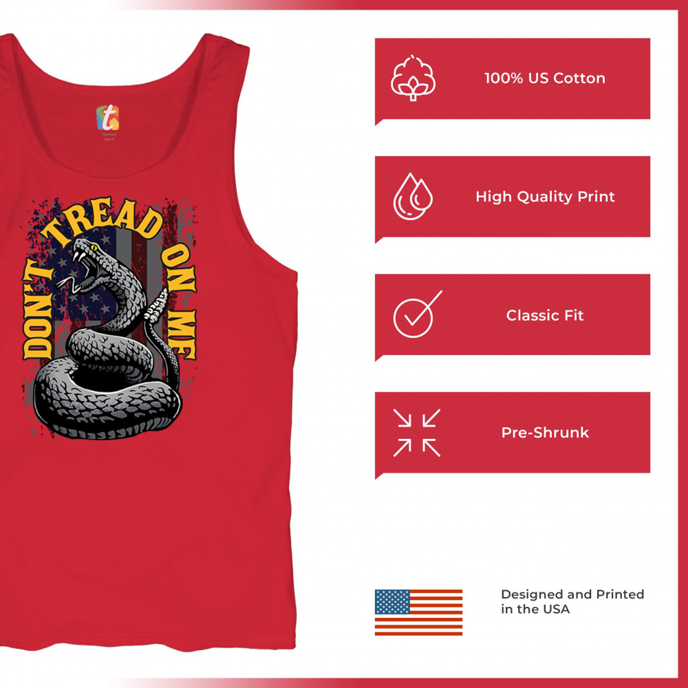 Bold "Don't Tread on Me" design with snake and American flag. Ideal for patriots. Show your love for freedom and independence.