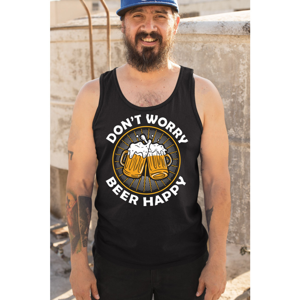 Spread joy with the "Don't Worry, Beer Happy" design, perfect for beer lovers. Ideal for casual outings and social gatherings.