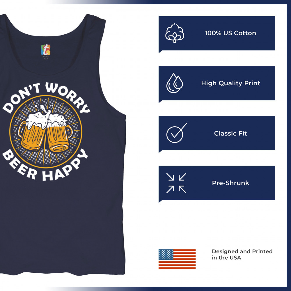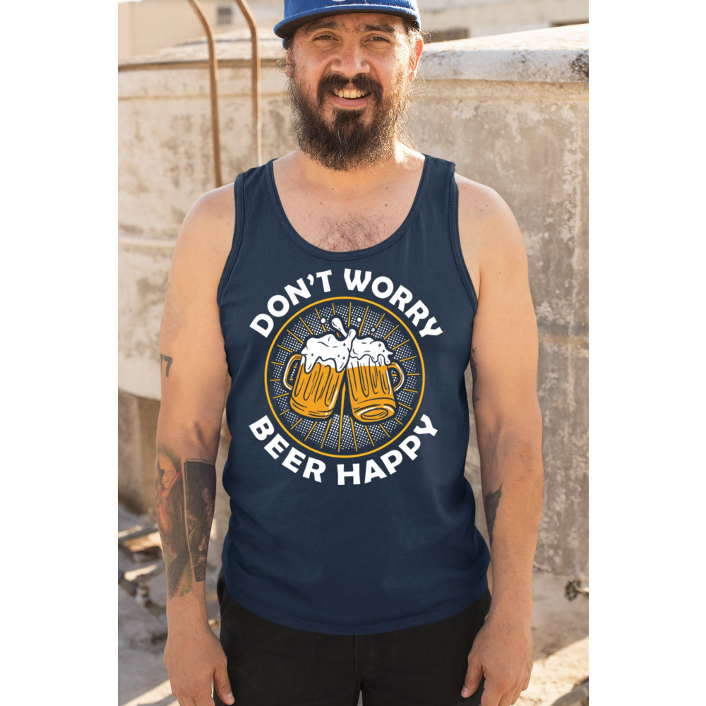 Spread joy with the "Don't Worry, Beer Happy" design, perfect for beer lovers. Ideal for casual outings and social gatherings.