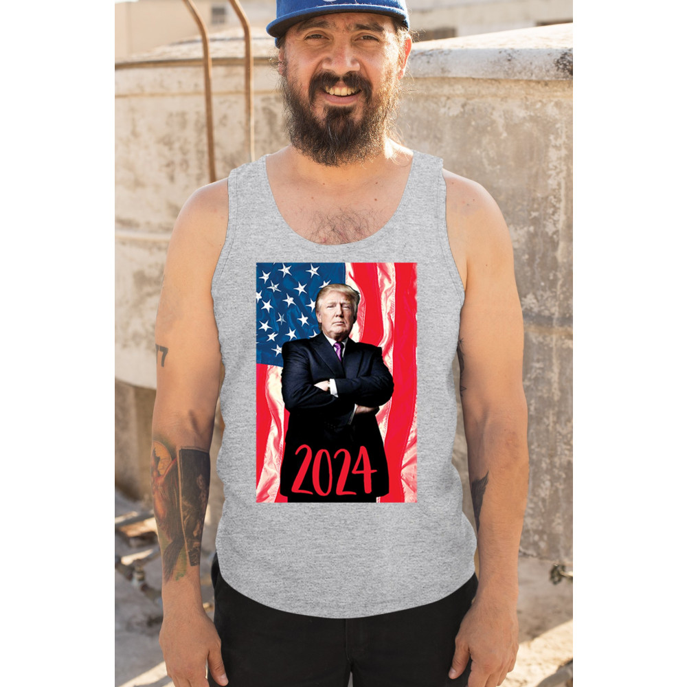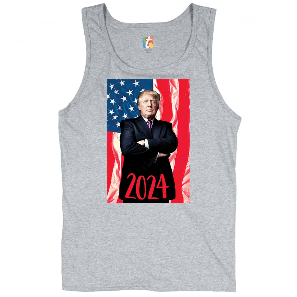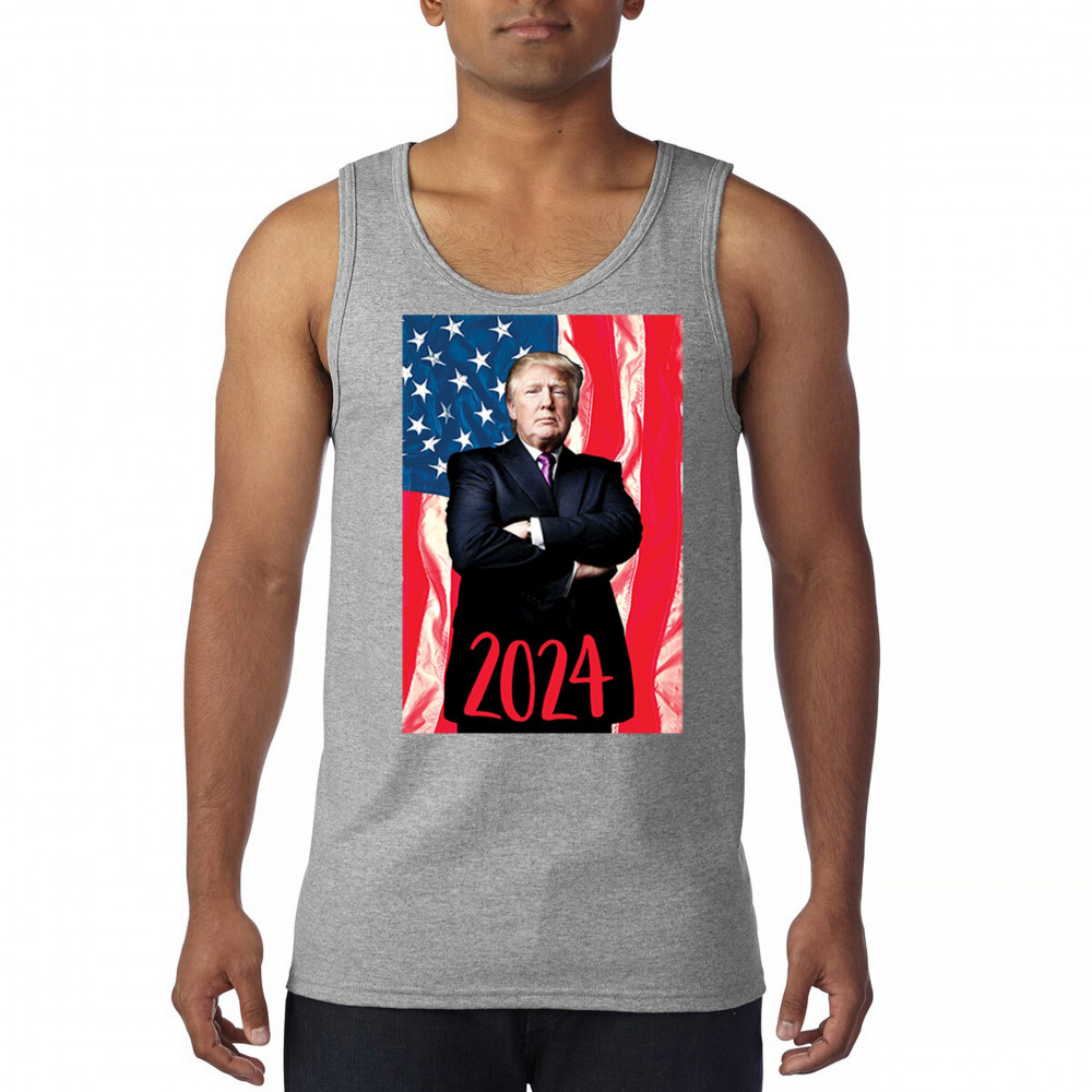Showcase your unwavering support and patriotic pride with our exclusive design, featuring Donald Trump poised before the American flag with "2024" inscribed below. This powerful imagery is a testament to the conservative journey towards victory, echoing the calls of "America First" and unity under a common cause. It's a tribute to those who believe in standing firm, fueled by trust in God and a commitment to the principles that define us. A must-have for every supporter ready to be part of the next chapter in American history.