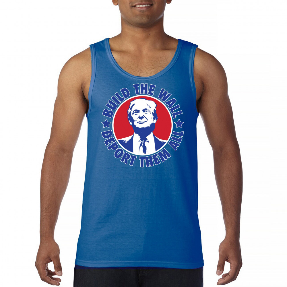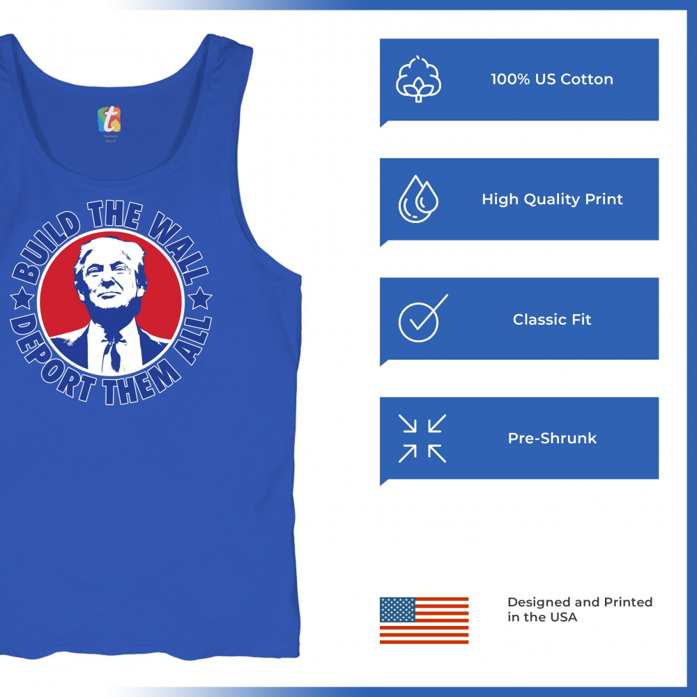 Showcase your unwavering support with a bold design that champions America first. Featuring the "Build the Wall Deport Them All Trump 2024" message, this piece is a must-have for conservatives, symbolizing trust in God over government, and a commitment to never surrender. Adorned with the American flag and a call to rebelution, it's perfect for any Trump supporter ready to stand against the tide.