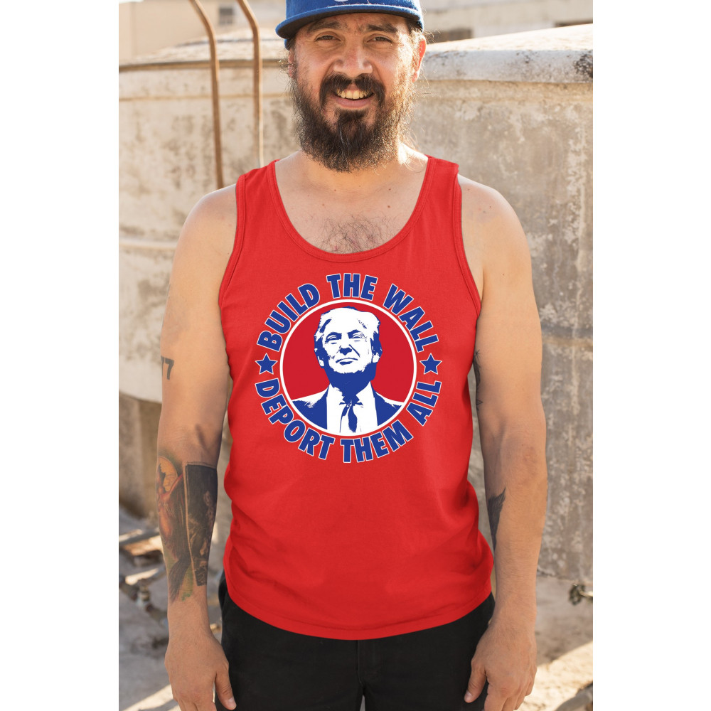 Showcase your unwavering support with a bold design that champions America first. Featuring the "Build the Wall Deport Them All Trump 2024" message, this piece is a must-have for conservatives, symbolizing trust in God over government, and a commitment to never surrender. Adorned with the American flag and a call to rebelution, it's perfect for any Trump supporter ready to stand against the tide.