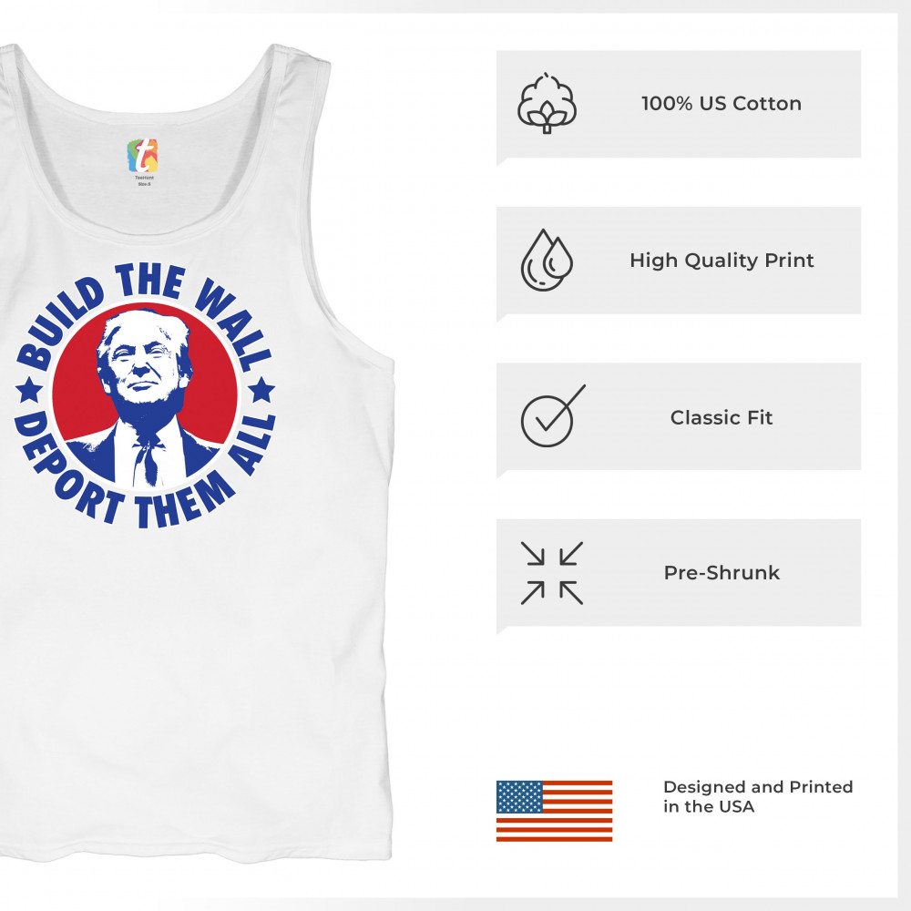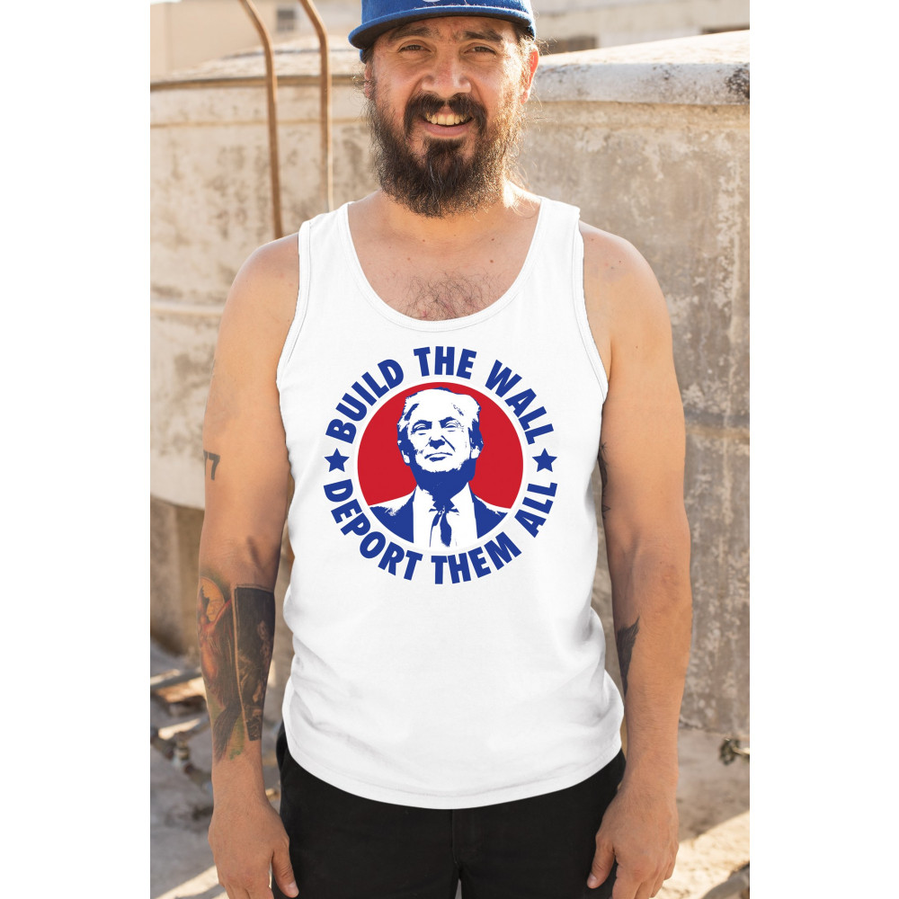 Showcase your unwavering support with a bold design that champions America first. Featuring the "Build the Wall Deport Them All Trump 2024" message, this piece is a must-have for conservatives, symbolizing trust in God over government, and a commitment to never surrender. Adorned with the American flag and a call to rebelution, it's perfect for any Trump supporter ready to stand against the tide.