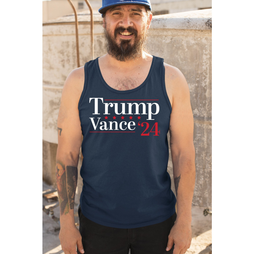 Support Trump-Vance 2024 with this bold design featuring the "Make America Great Again" slogan and the American flag. Perfect for rallies and conservative events.