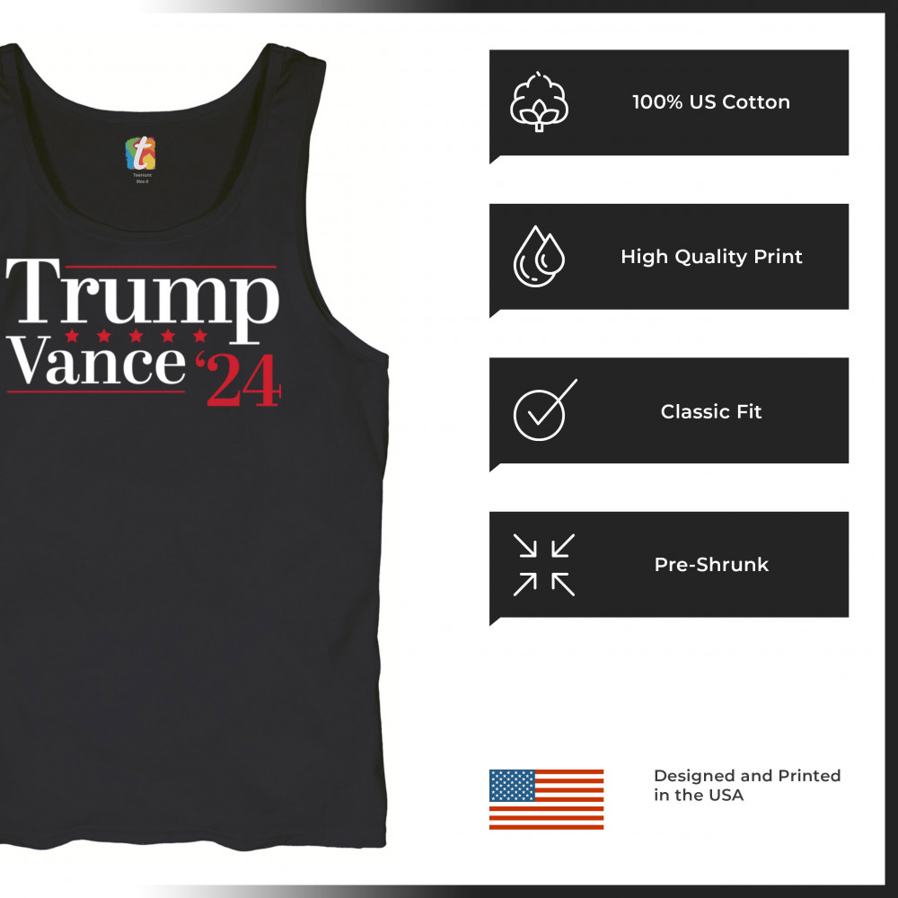 Support Trump-Vance 2024 with this bold design featuring the "Make America Great Again" slogan and the American flag. Perfect for rallies and conservative events.