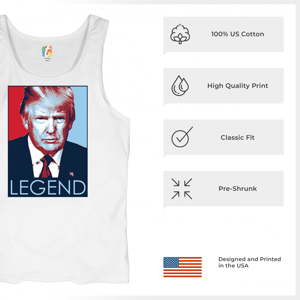 Embrace the legend with our striking design showcasing Donald Trump in a bold pose, surrounded by the vibrant hues of red, white, and blue. Perfect for conservatives and proud supporters, it captures the essence of America first and victory. Stand tall with Trump and proudly display your unwavering support for our nation's legendary leader. Let your apparel make a bold statement.