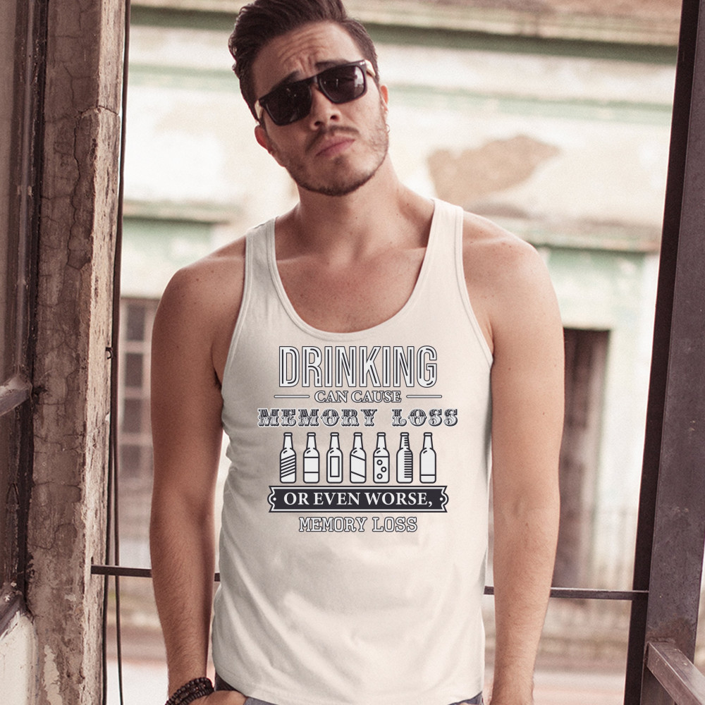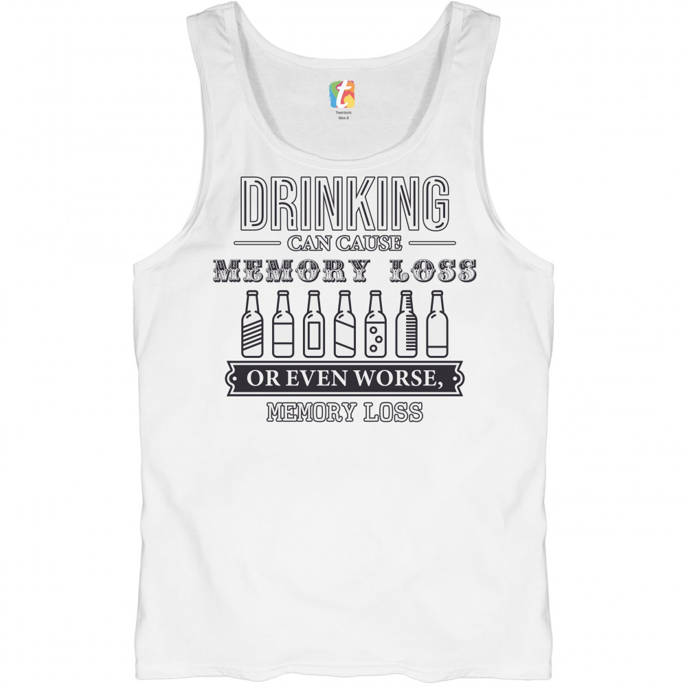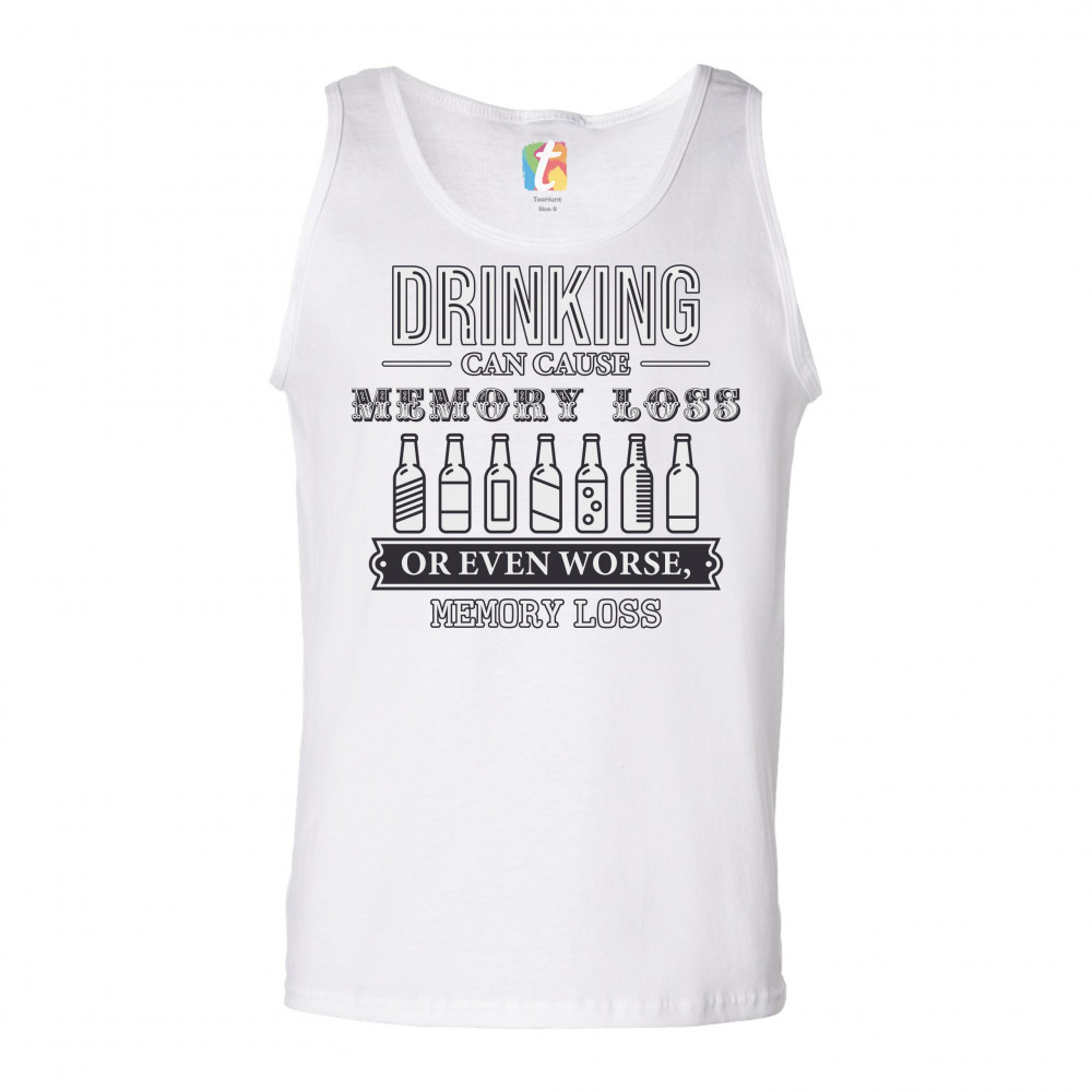 DRINKING CAN CAUSE MEMORY LOSS tank top alcohol beer inappropriate men's top white