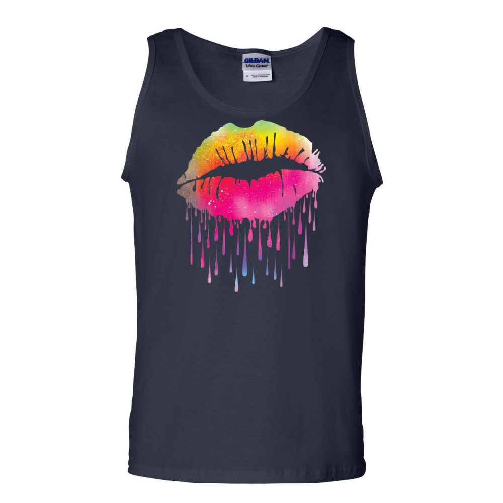 DRIPPING NEON LIPS tank top lips like sugar kiss love sexy melt sleeveless navy blue