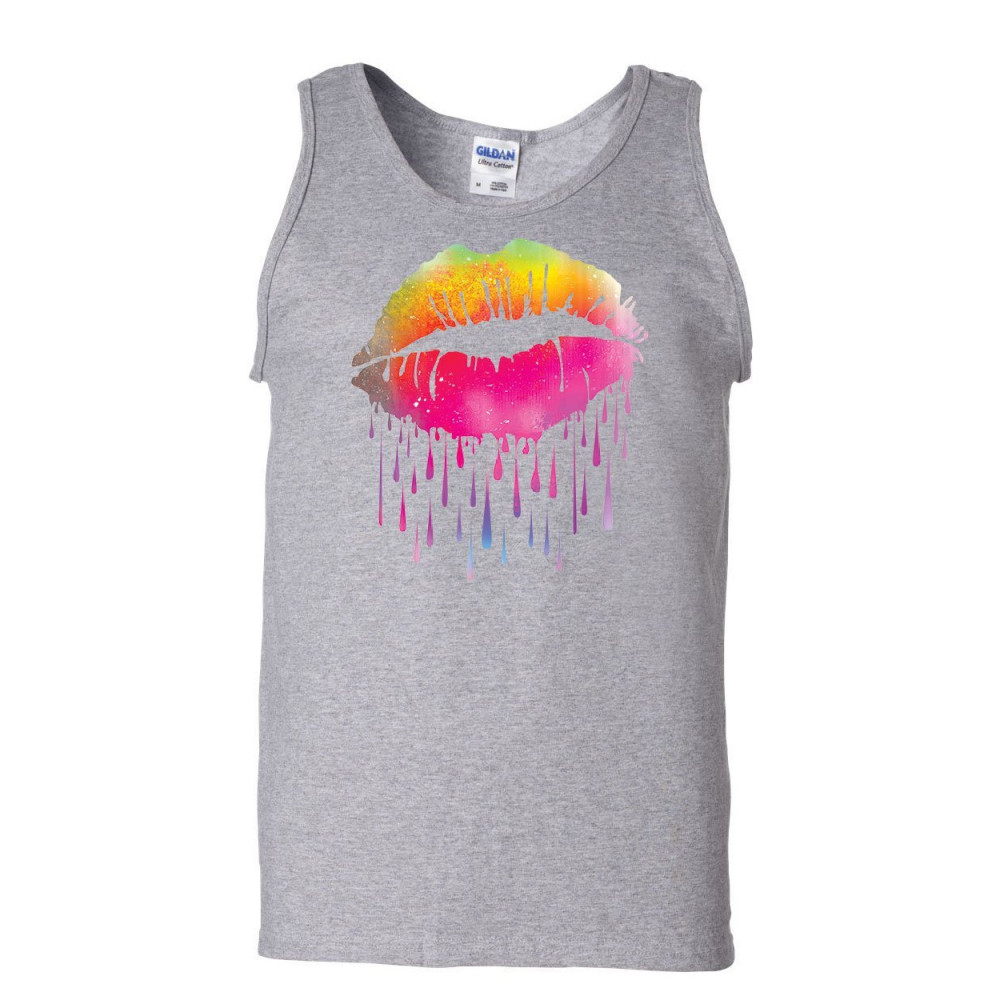 DRIPPING NEON LIPS tank top lips like sugar kiss love sexy melt sleeveless gray