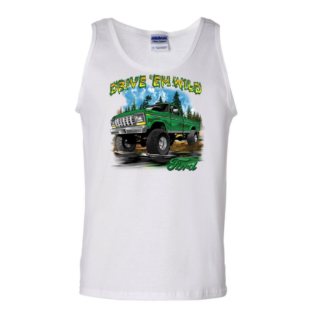 DRIVE 'EM WILD tank top ford pickup trucks f-150 offroad mud ride sleeveless white