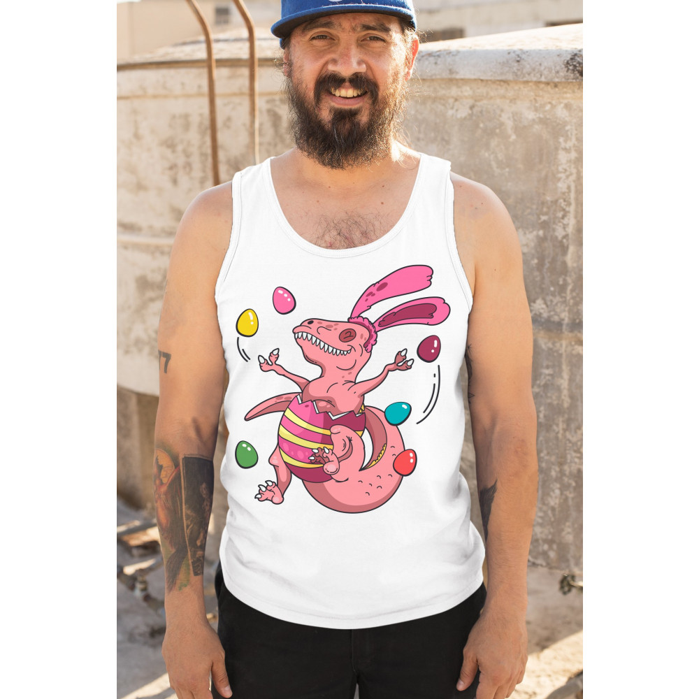 EASTER EGG T-REX tank top happy easter bunny dinosaur egg hunt men's top white