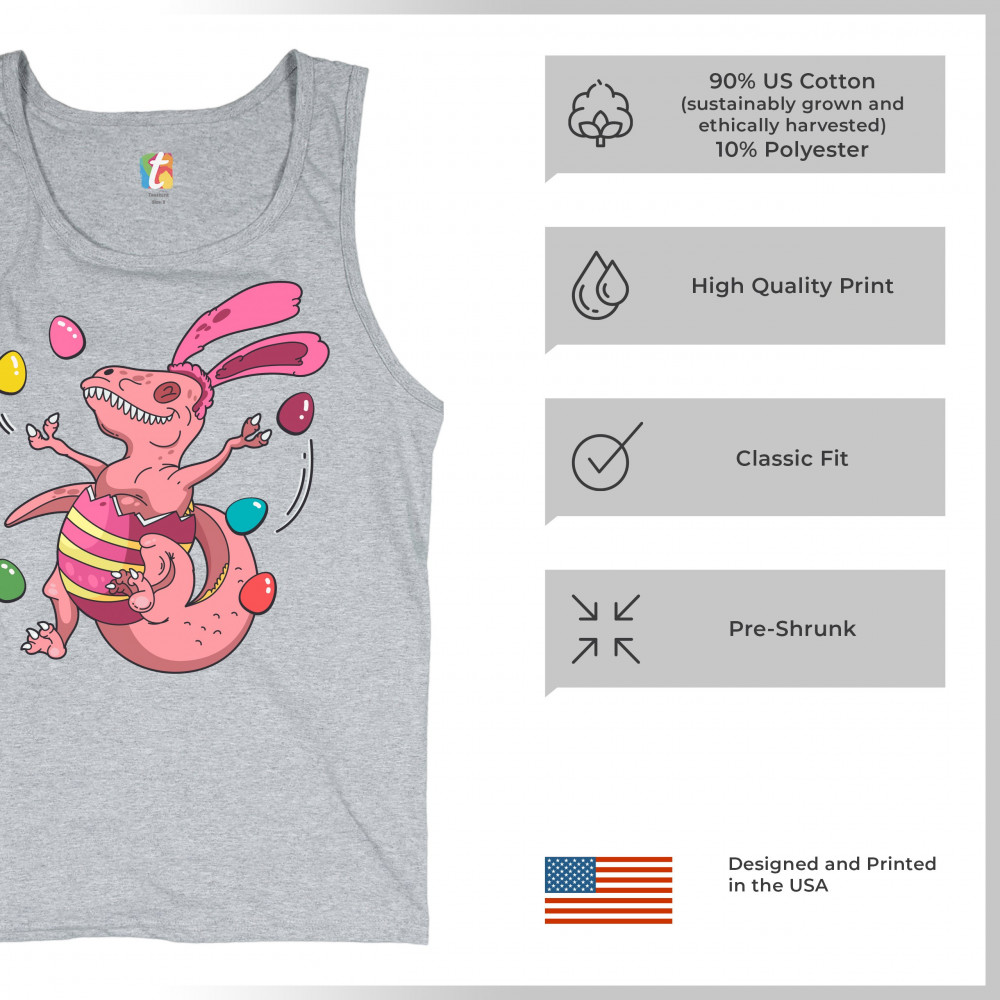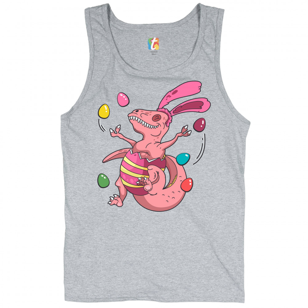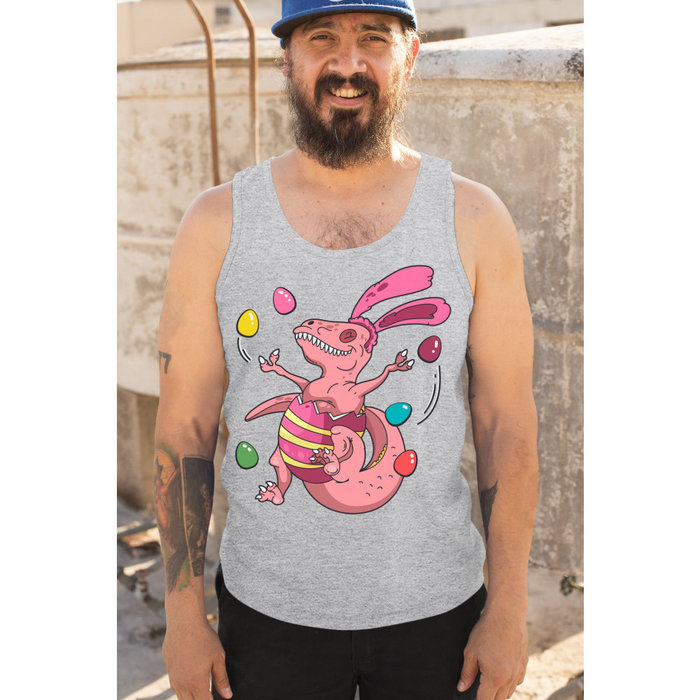 EASTER EGG T-REX tank top happy easter bunny dinosaur egg hunt men's top gray
