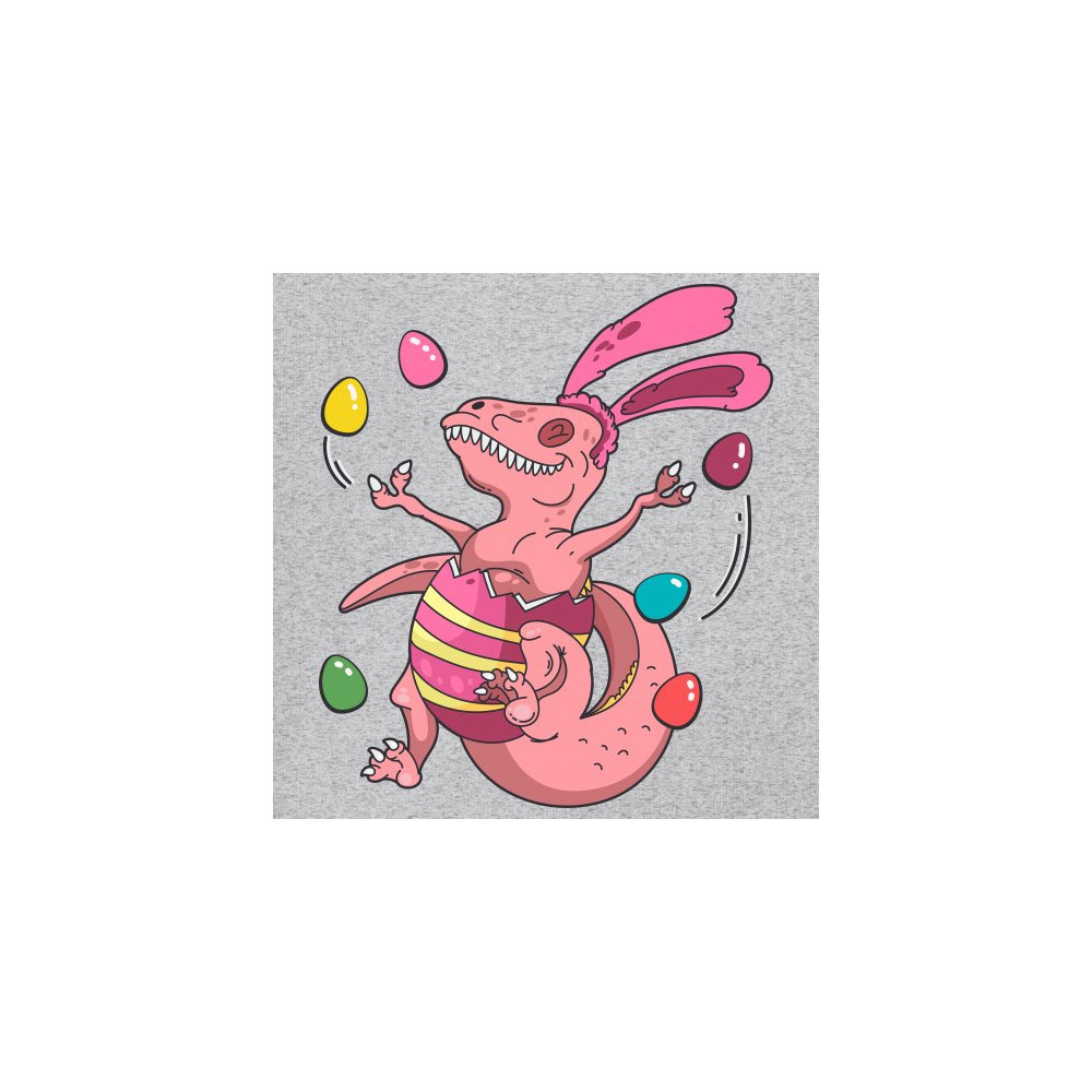 A print displaying a pink Tyrannosaurus Rex with rabbit ears hatching from an Easter egg surrounded by smaller eggs. A great gift for a religious person for Easter, Christmas or any other religious holiday.