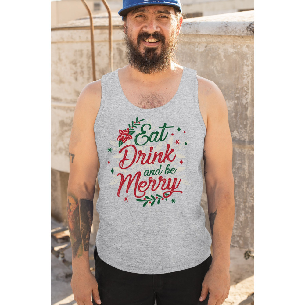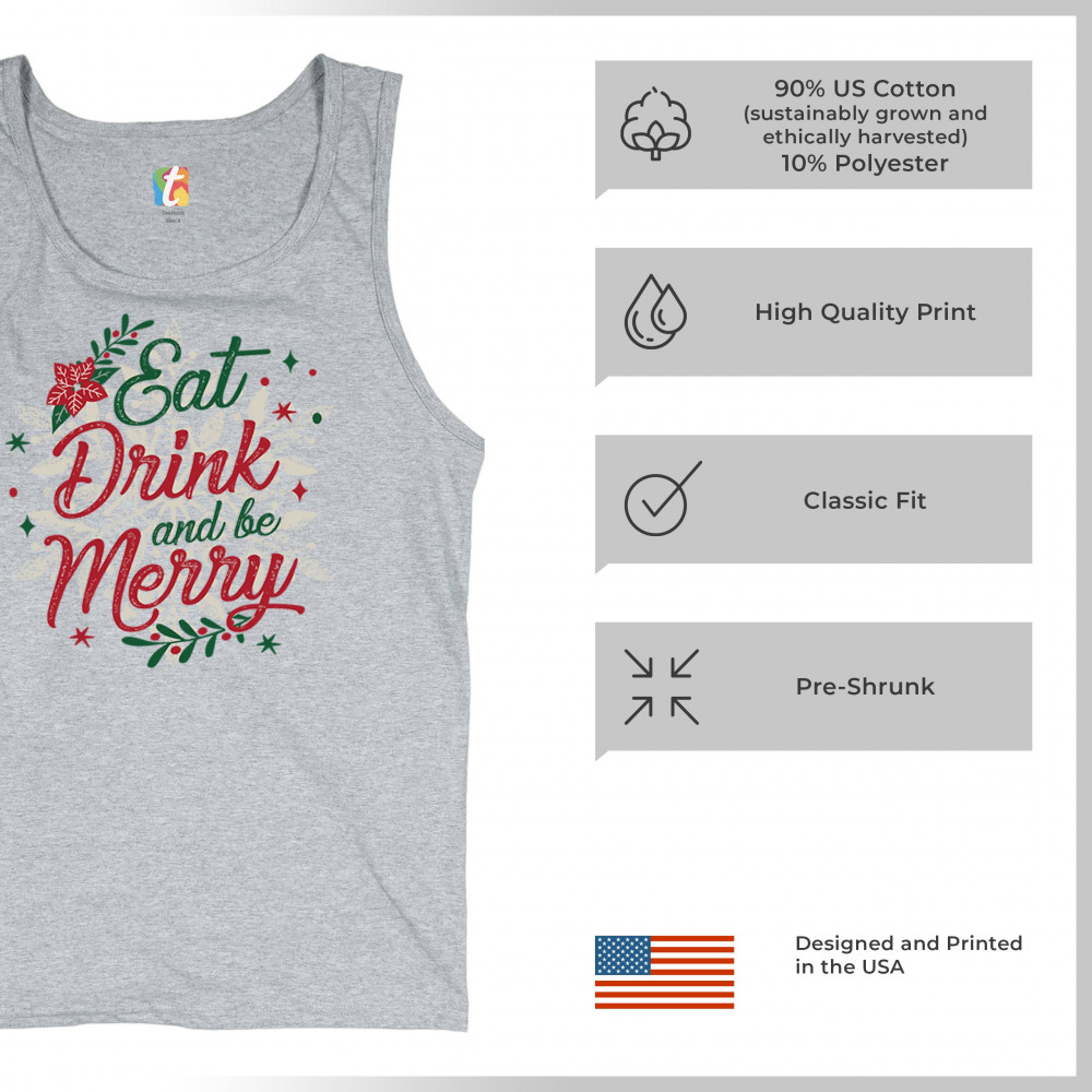 Bring the joy of the season with this "Eat, Drink, and Be Merry" design, crafted to make every holiday gathering a bit brighter. Ideal for cozy holiday mornings, family gatherings, Secret Santa gifts, or festive office parties, this piece captures the spirit of Christmas. Perfect for matching group sets or as a thoughtful holiday present, it’s designed in classic Christmas colors to complement the festive atmosphere. Let this design bring warmth and joy to your celebrations!