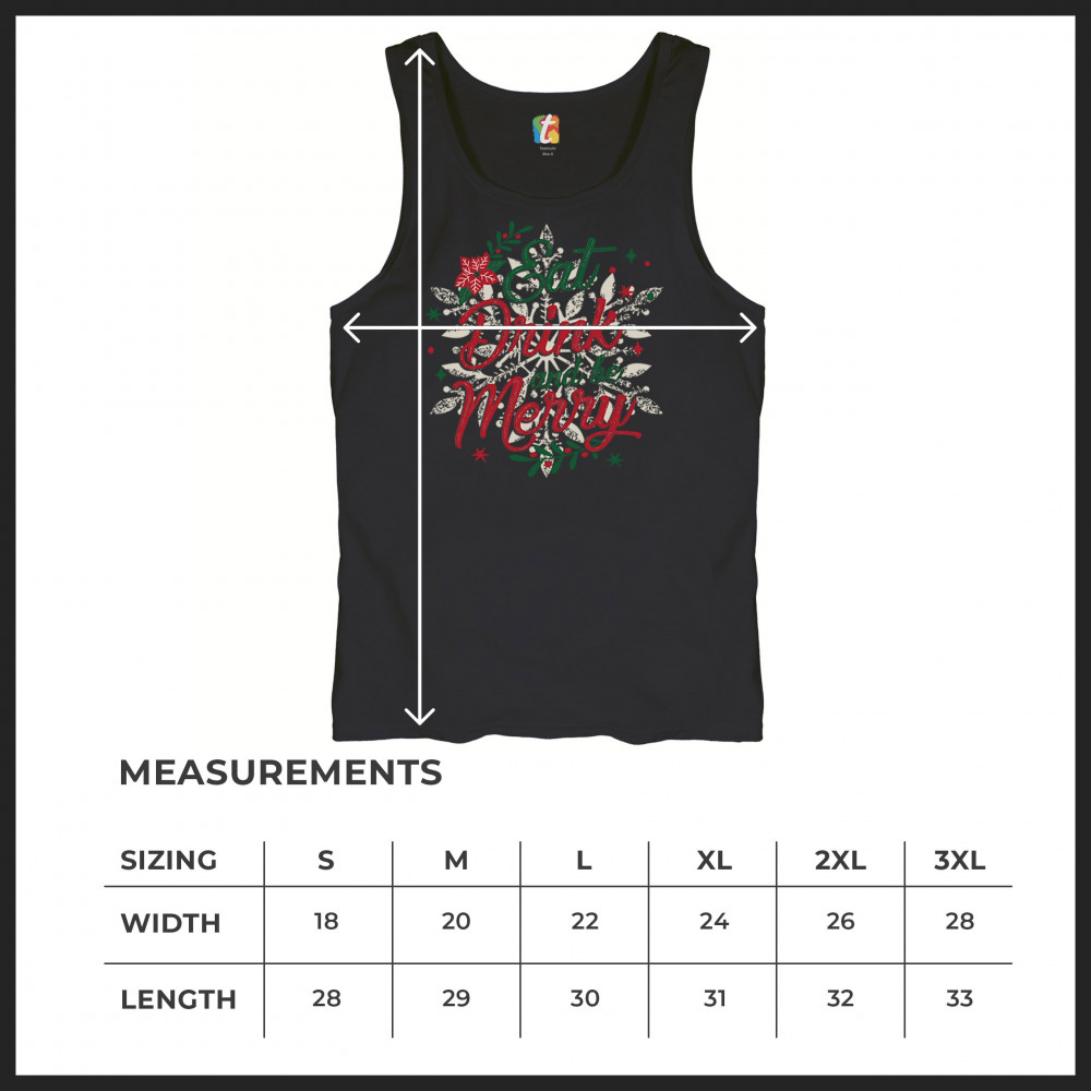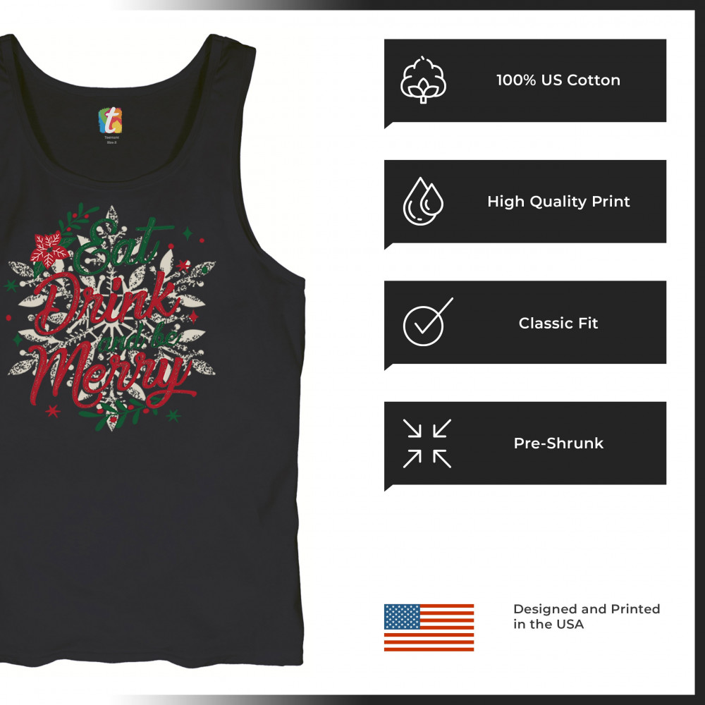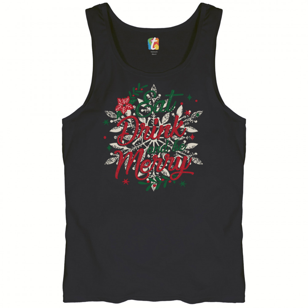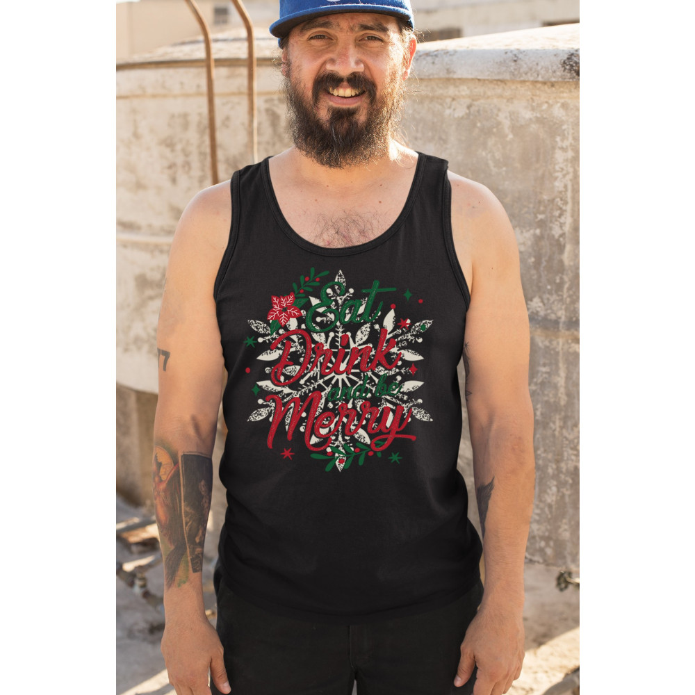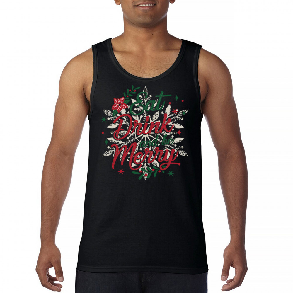 EAT DRINK & BE MERRY tank top christmas holiday spirit festive xmas men's top black