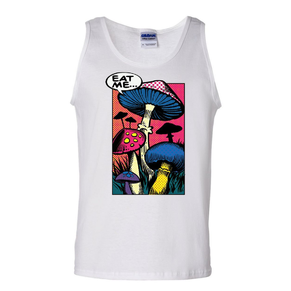 EAT ME... eat me tank top shroom mushroom fungi psychedelic hallucinations sleeveless white