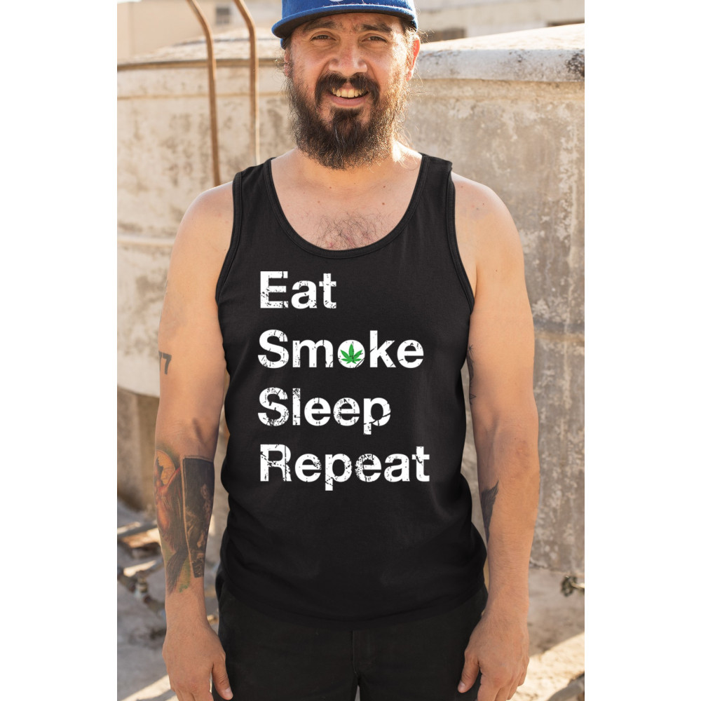 Eat Smoke Sleep Repeat design with weed leaf humor. Great for 420 fans, stoners, sesh lovers, smokers, and relaxed cannabis vibes.