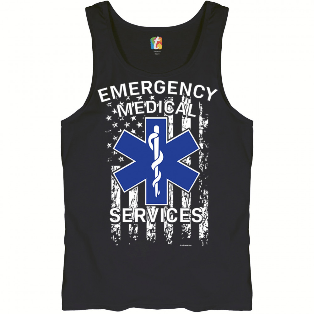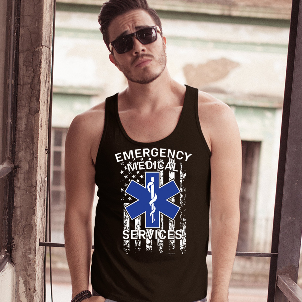 EMERGENCY MEDICAL SERVICES tank top american flag star of life ems men's top black