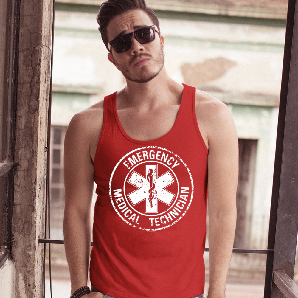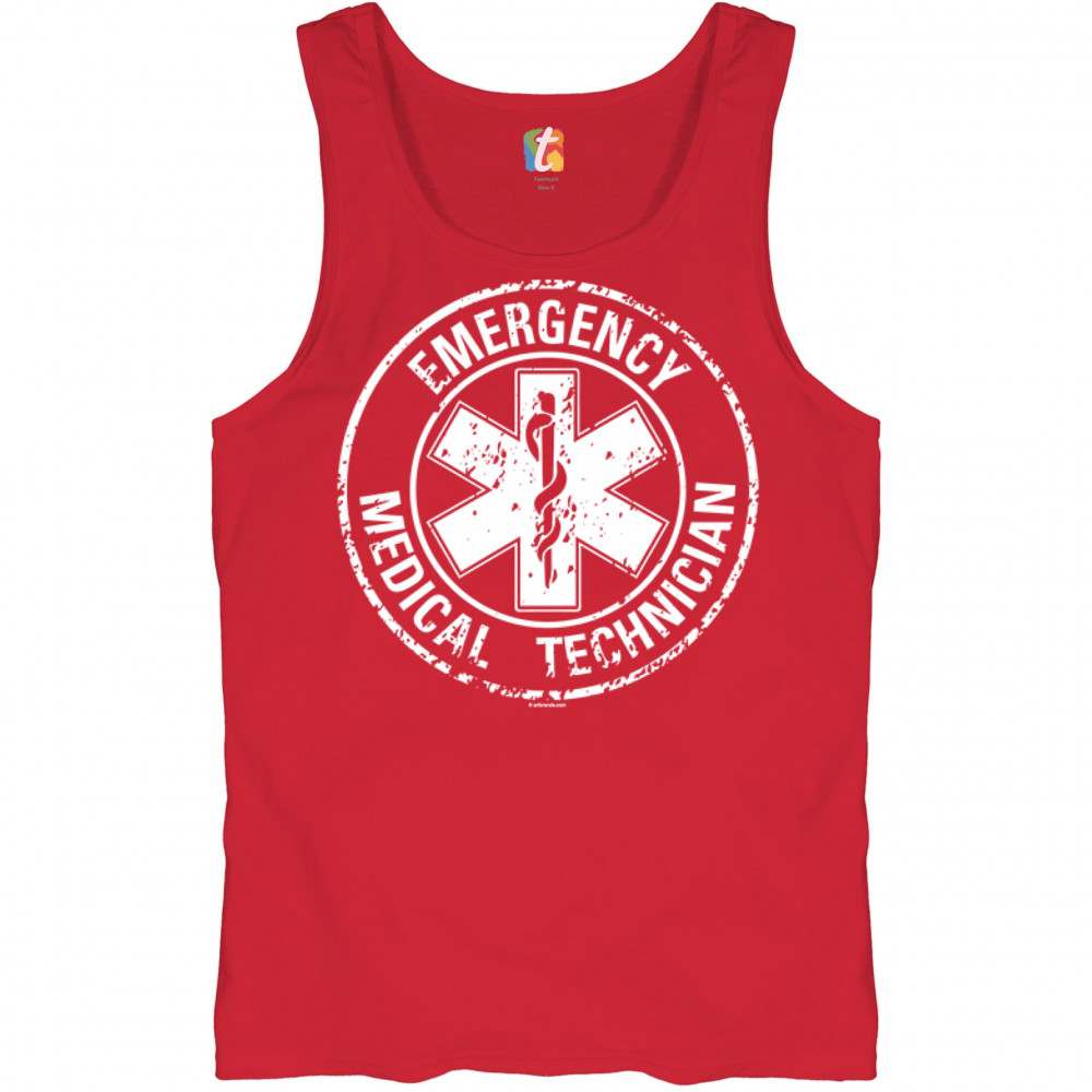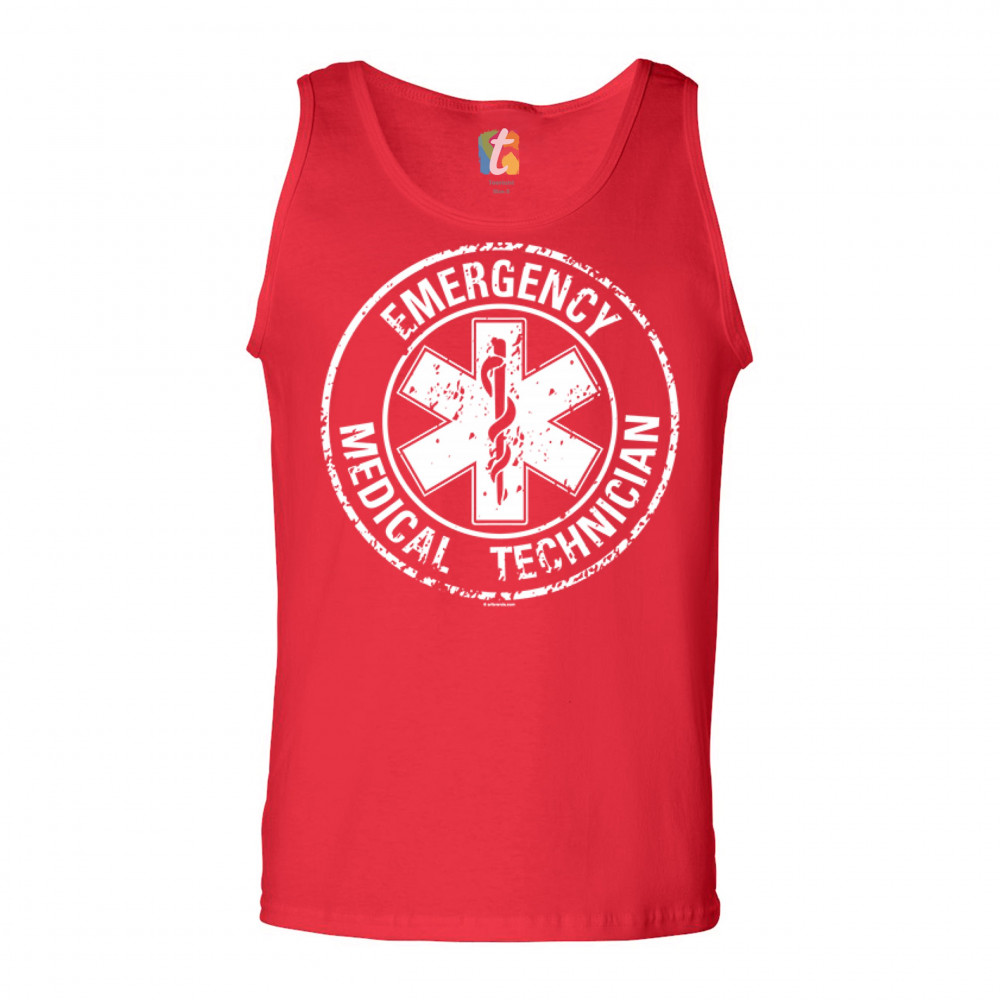 EMERGENCY MEDICAL TECHNICIAN tank top emt distressed star of life men's top red