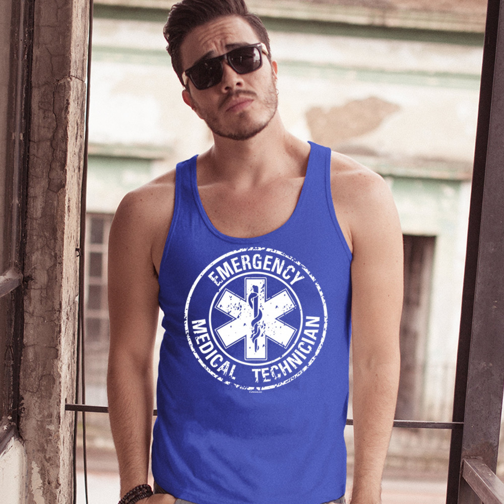 EMERGENCY MEDICAL TECHNICIAN tank top emt distressed star of life men's top royal blue