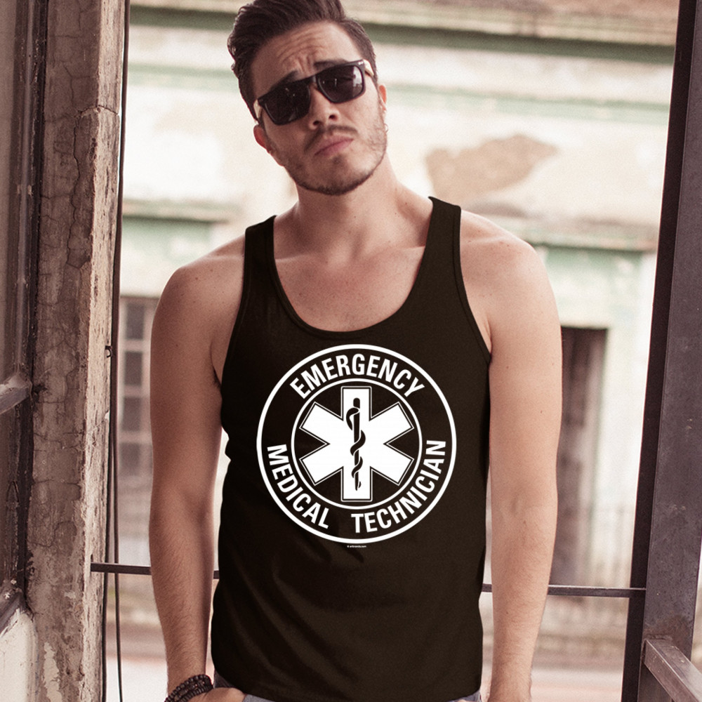 EMERGENCY MEDICAL TECHNICIAN tank top star of life first responder men's top black