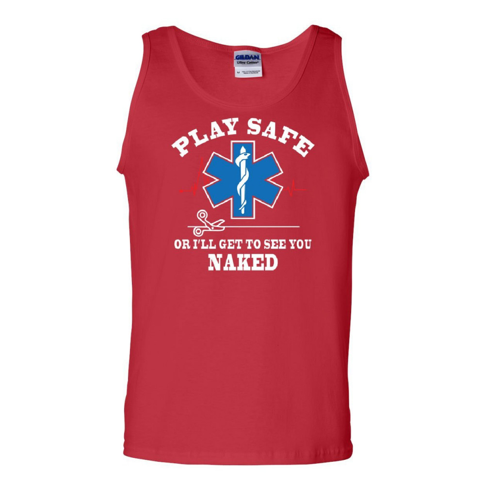 EMS PLAY SAFE OR I'LL GET TO SEE YOU NAKED tank top paramedic sleeveless red