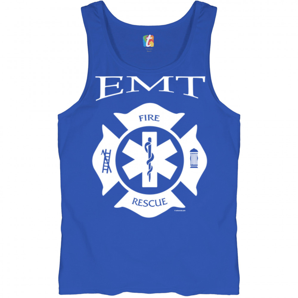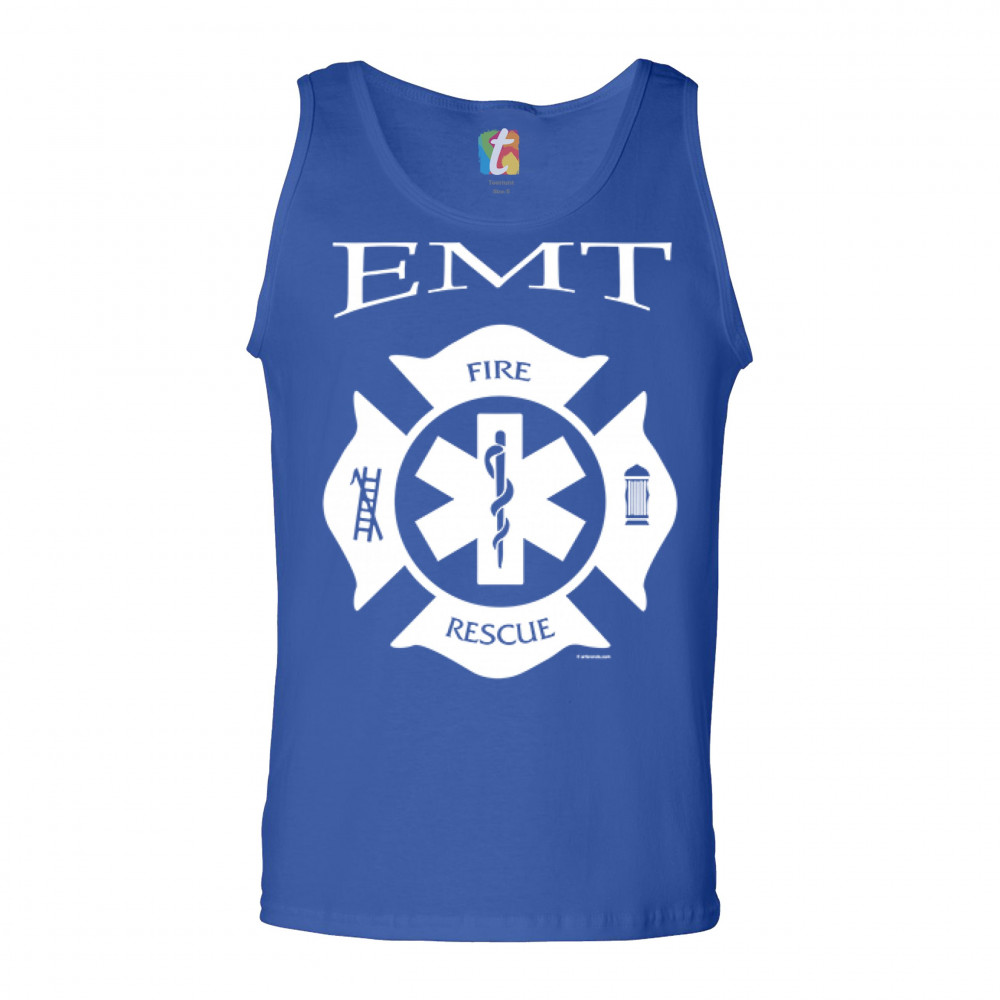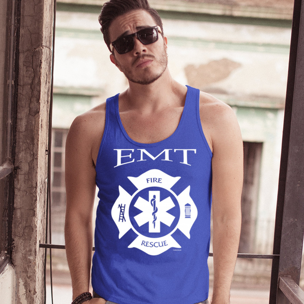 EMT FIRE AND RESCUE tank top emergency first responder ems medic men's top royal blue