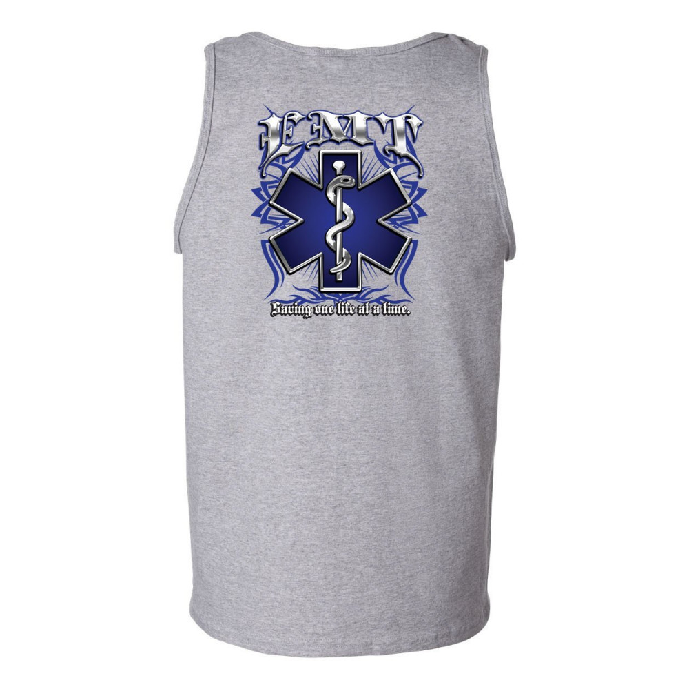 EMT SAVING ONE LIFE AT A TIME tank top paramedic first responders sleeveless gray