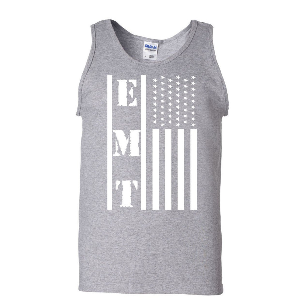 EMT STARS AND STRIPES tank top first responders paramedic ems sleeveless gray