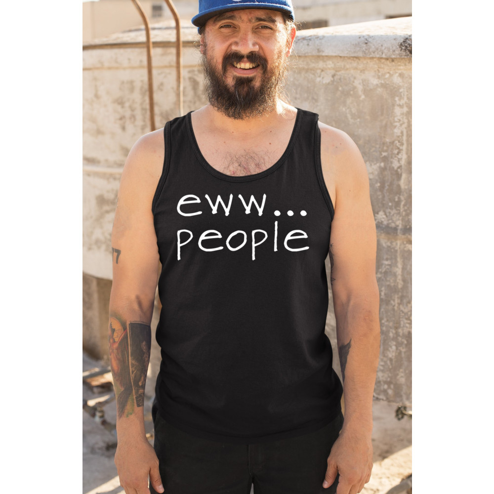 Embrace your personal space with a design that says 'less people, more peace' in a humorous, minimalist style.