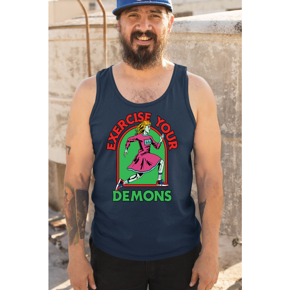 Exercise Your Demons shirt – funny halloween gym shirt with fitness humor, scary workout design, demon runner style, and spooky parody vibes.