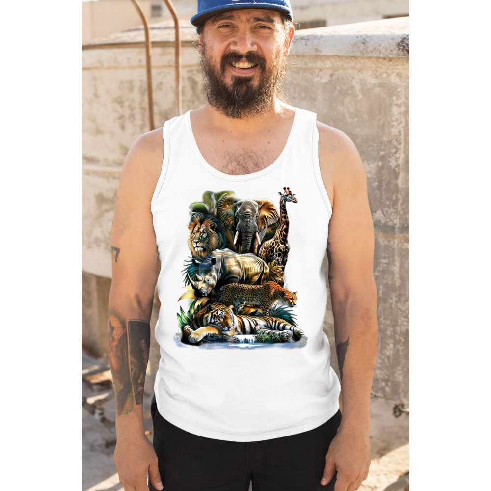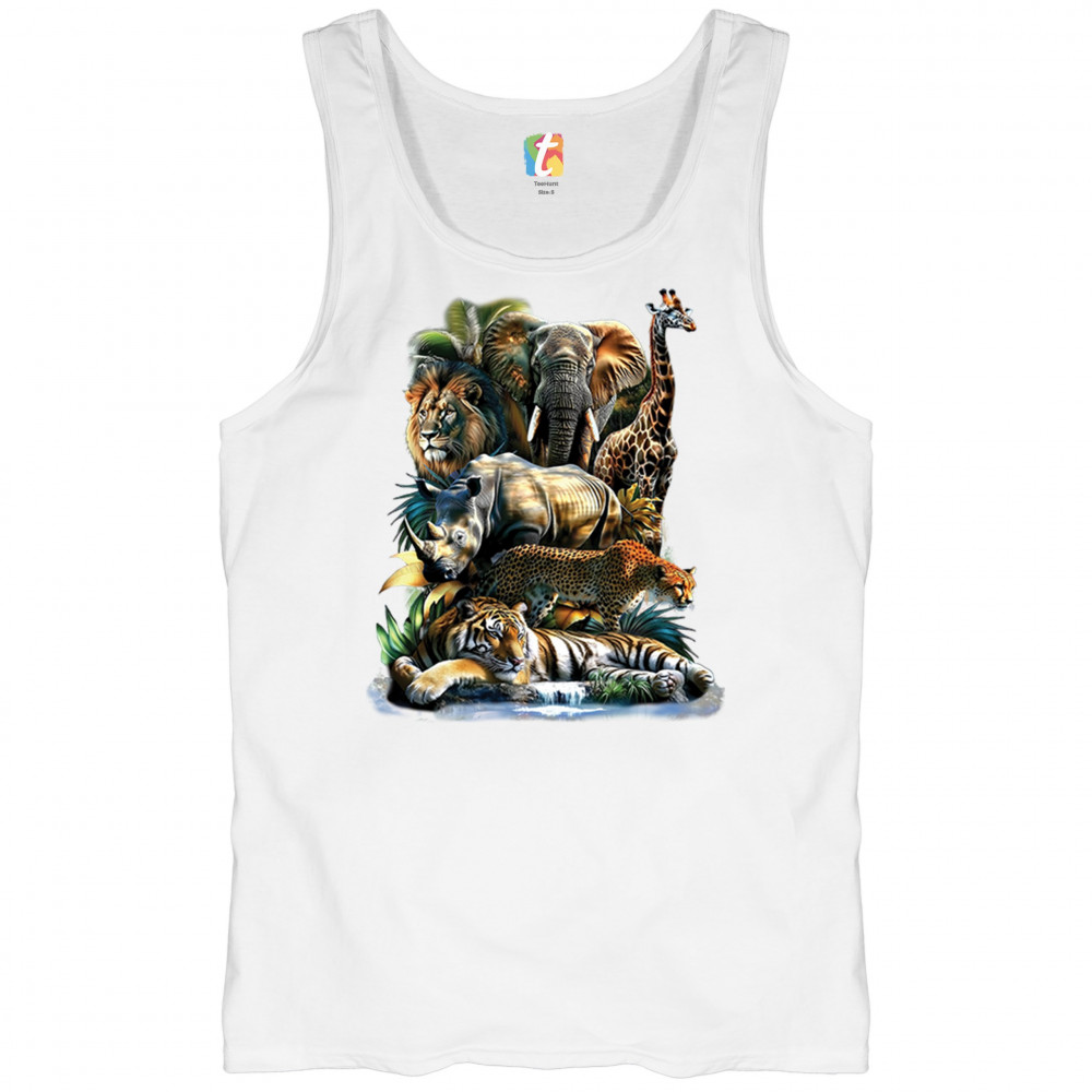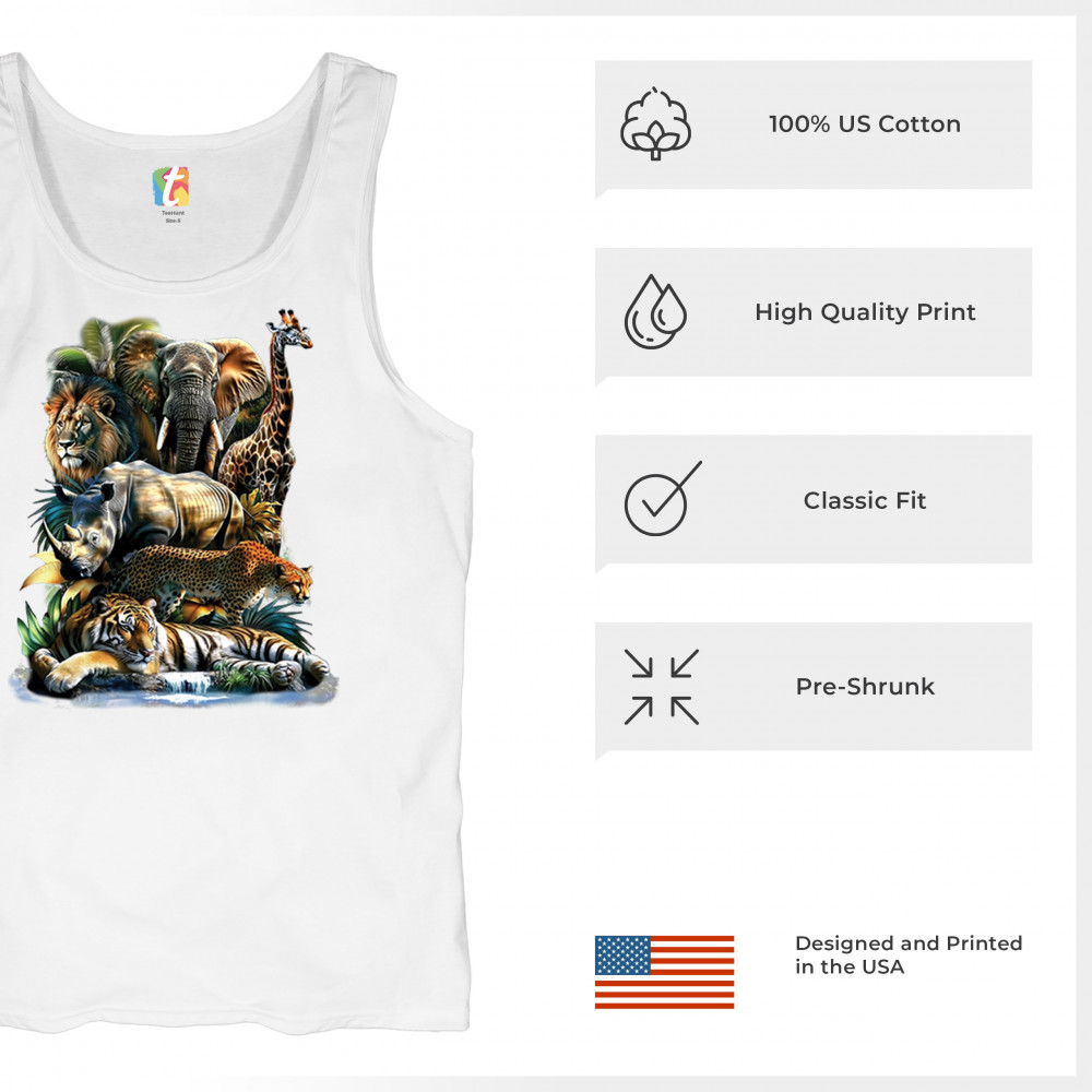Wildlife design with lion, tiger, giraffe, rhino, cheetah, and elephant. Perfect for animal lovers and safari fans who embrace nature’s fierce spirit.