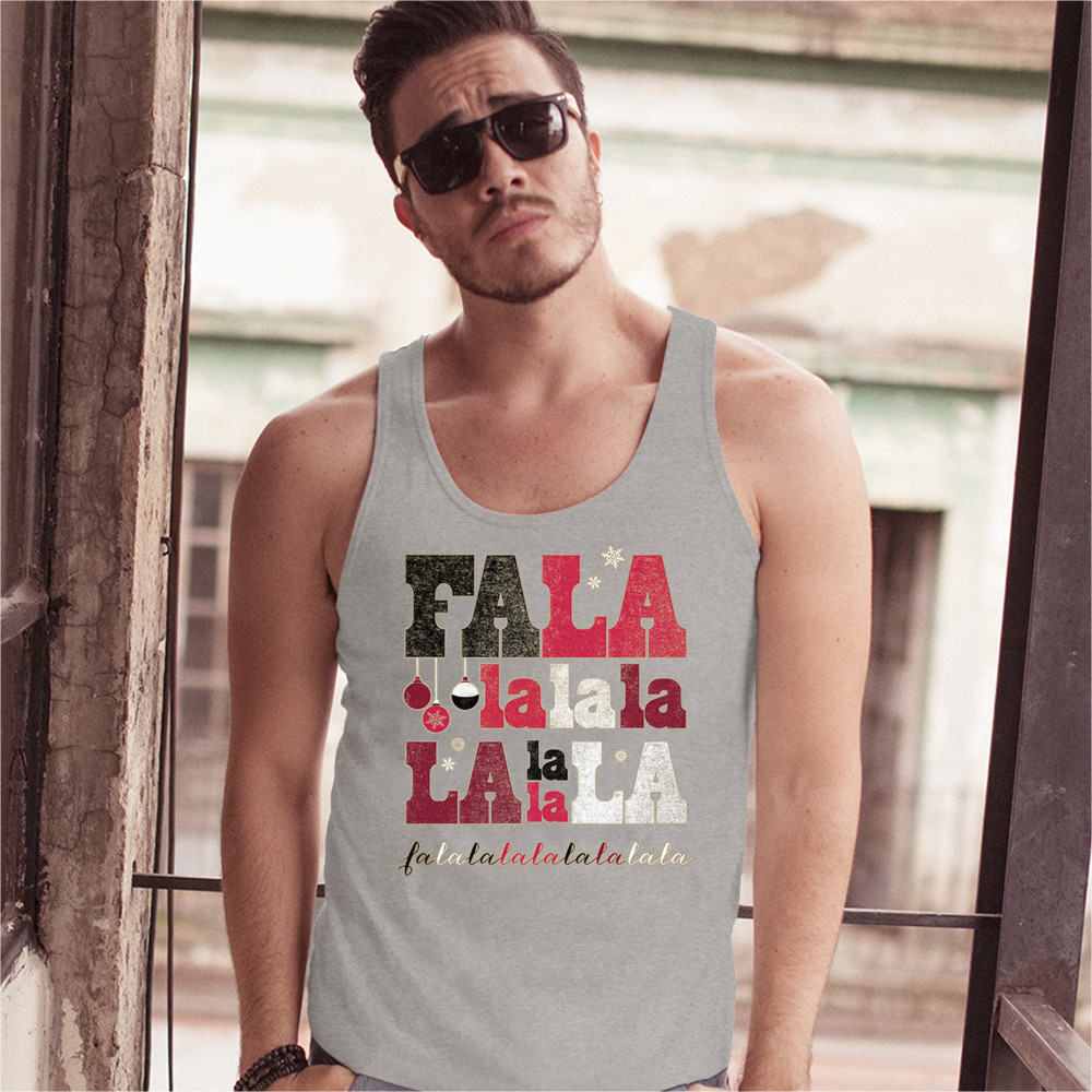 FA LA LA MERRY CHRISTMAS tank top deck the halls christmas party men's top gray