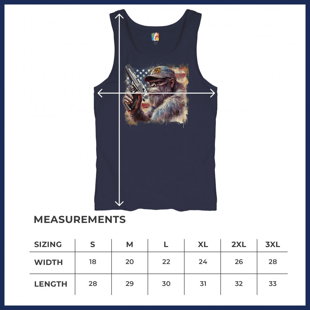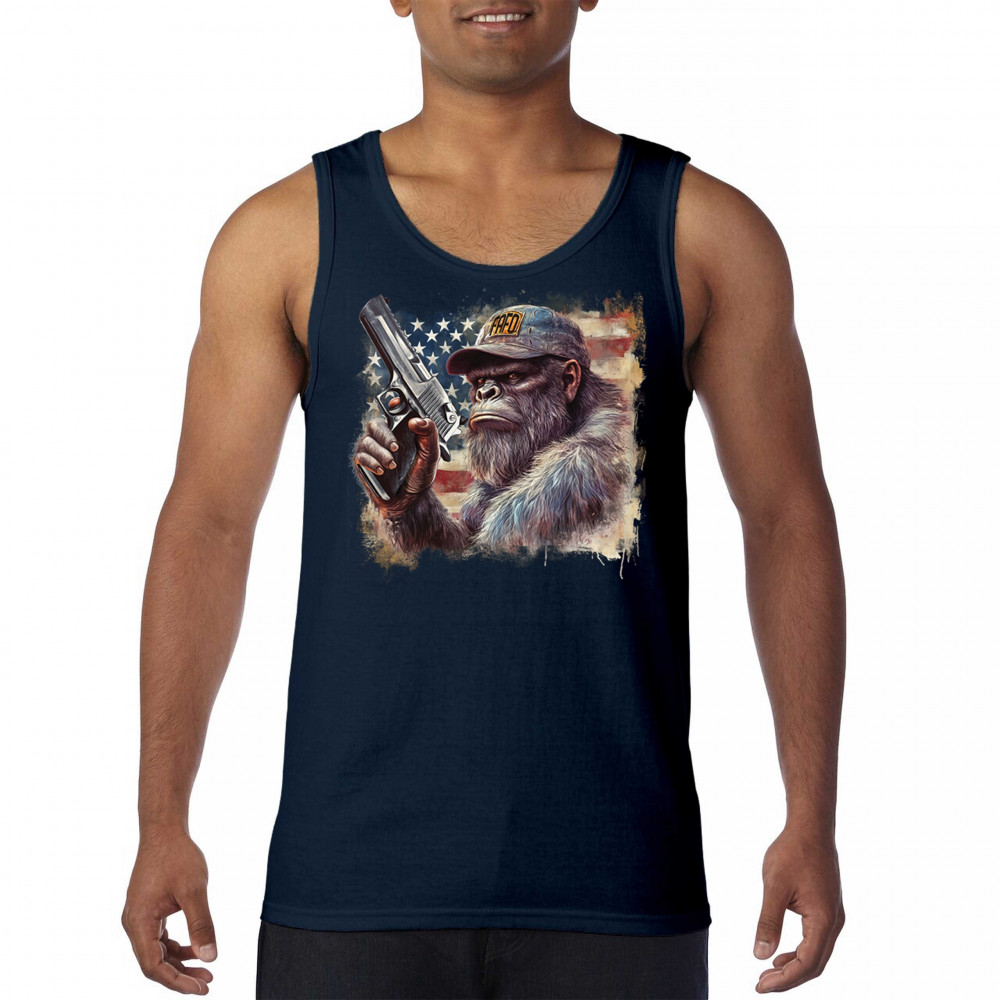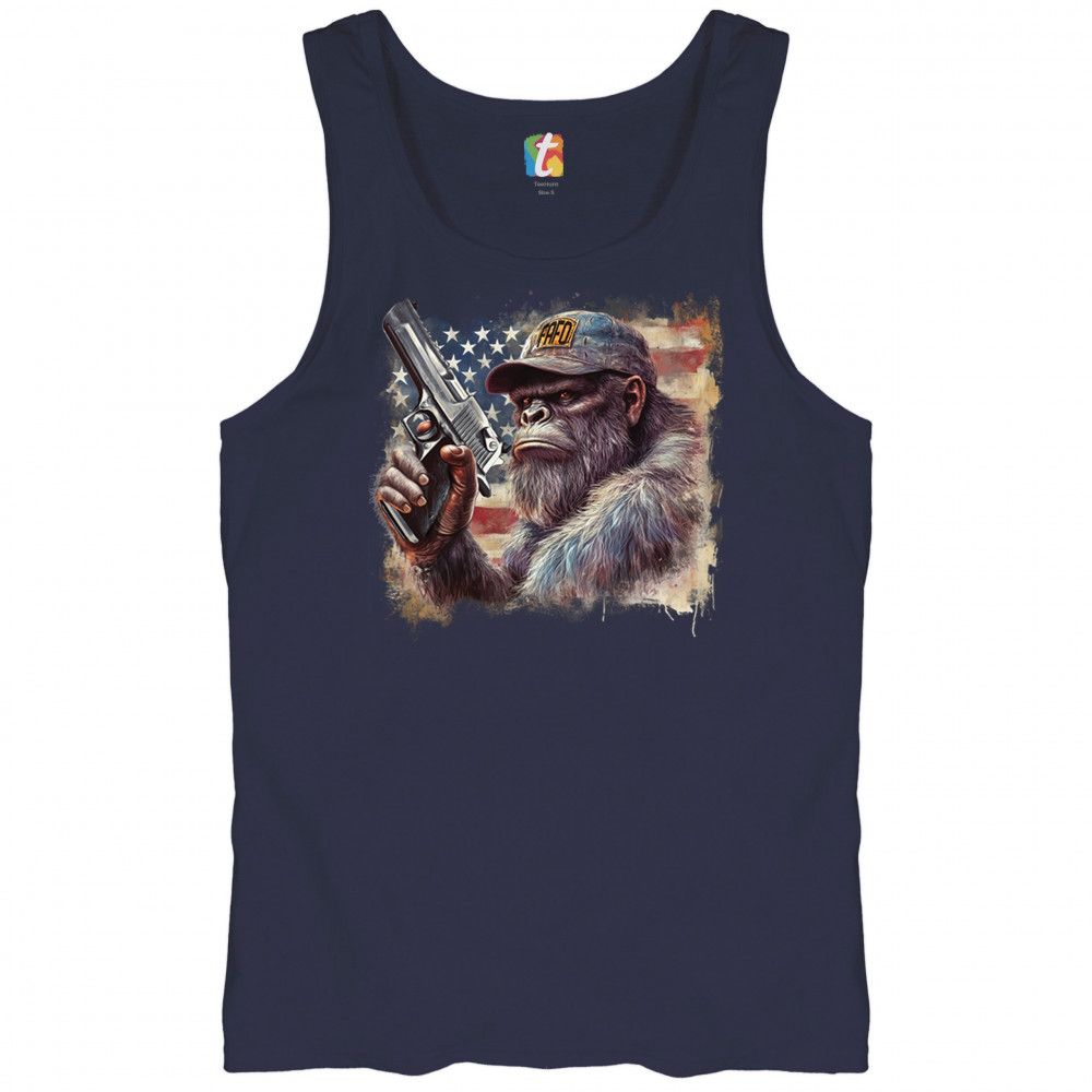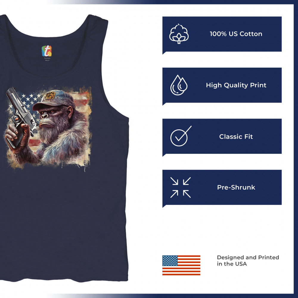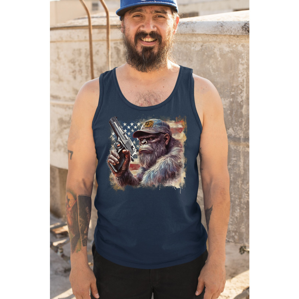 Show your Second Amendment pride with this bold patriotic gorilla design featuring the American flag and a firearm. Perfect for gun rights supporters, veterans, and freedom lovers.