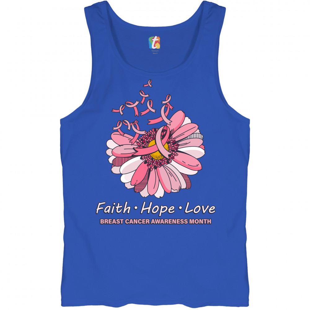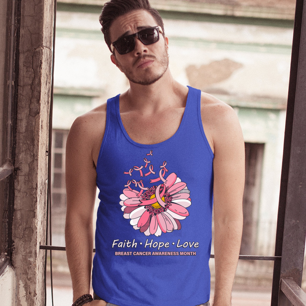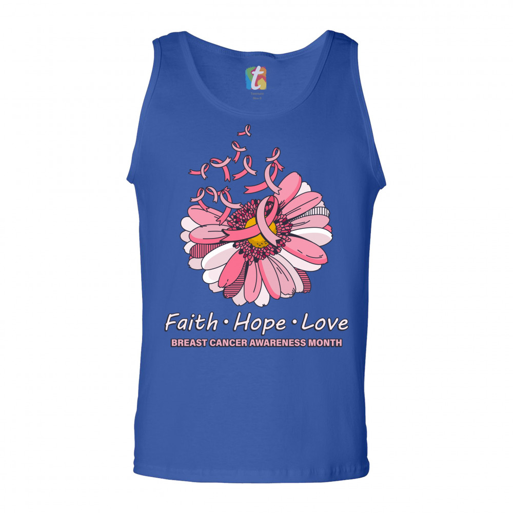 FAITH HOPE LOVE tank top breast cancer awareness month ribbon flower men's top royal blue