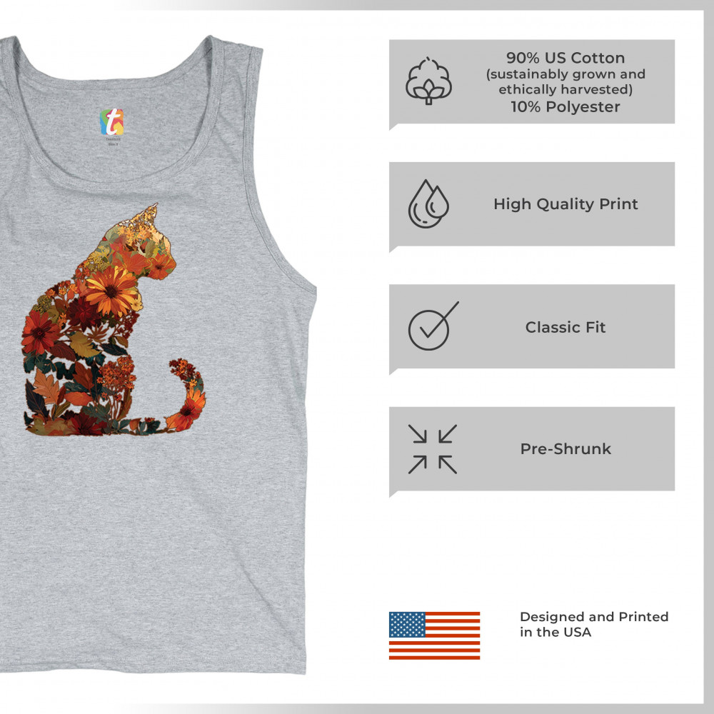 Bring autumn charm to your wardrobe with this cozy cat design filled with fall leaves and florals. Perfect for pet lovers, rustic farmhouse style, pumpkin patch outings, and fall festivals, it’s a unique way to showcase both your love of cats and seasonal harvest vibes.