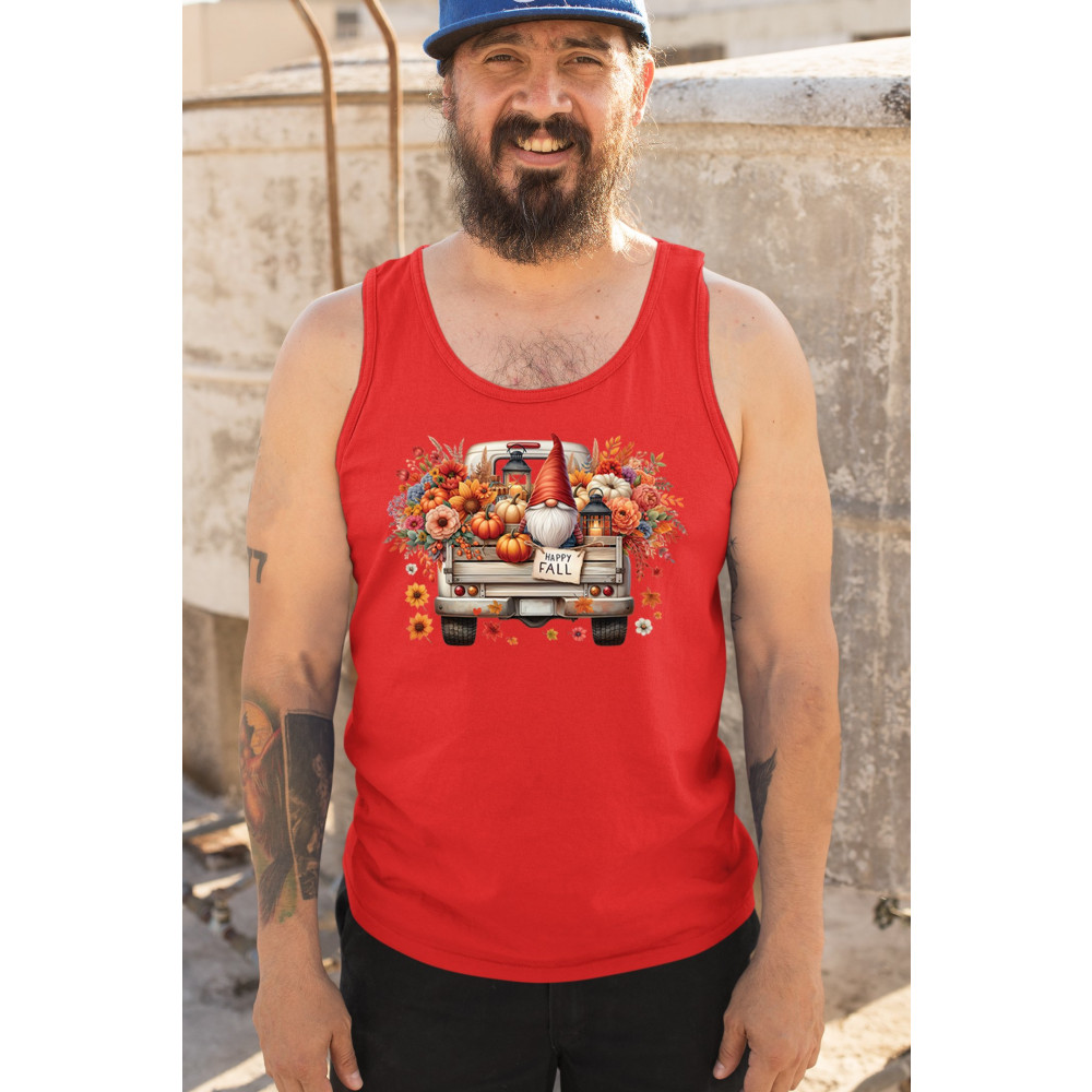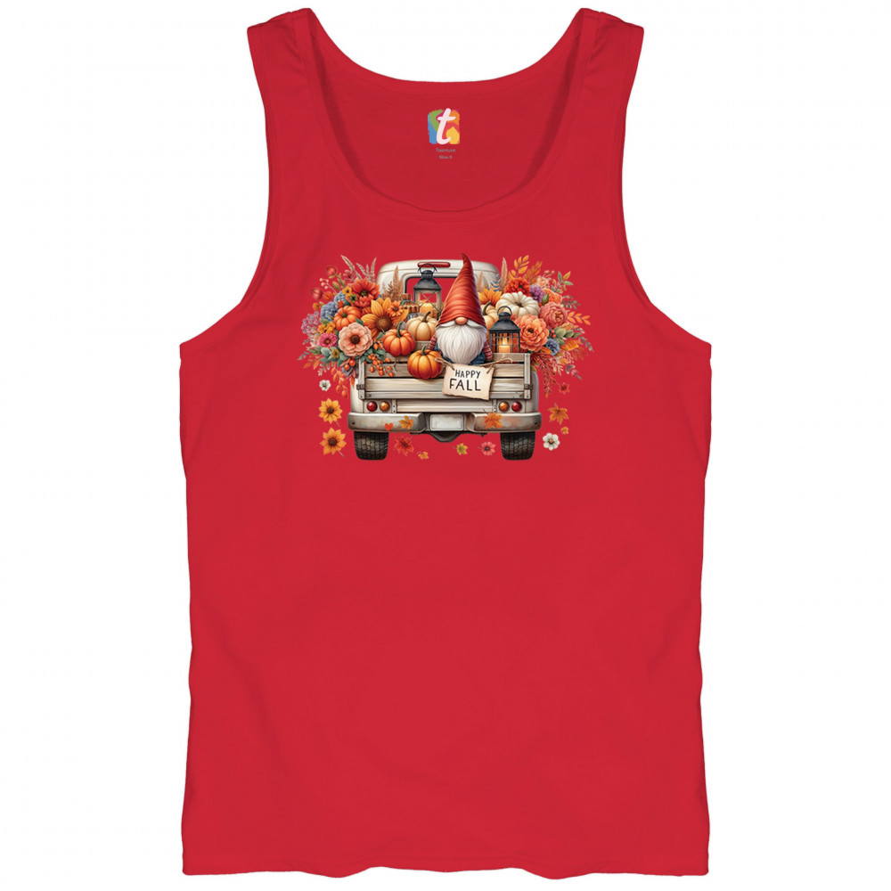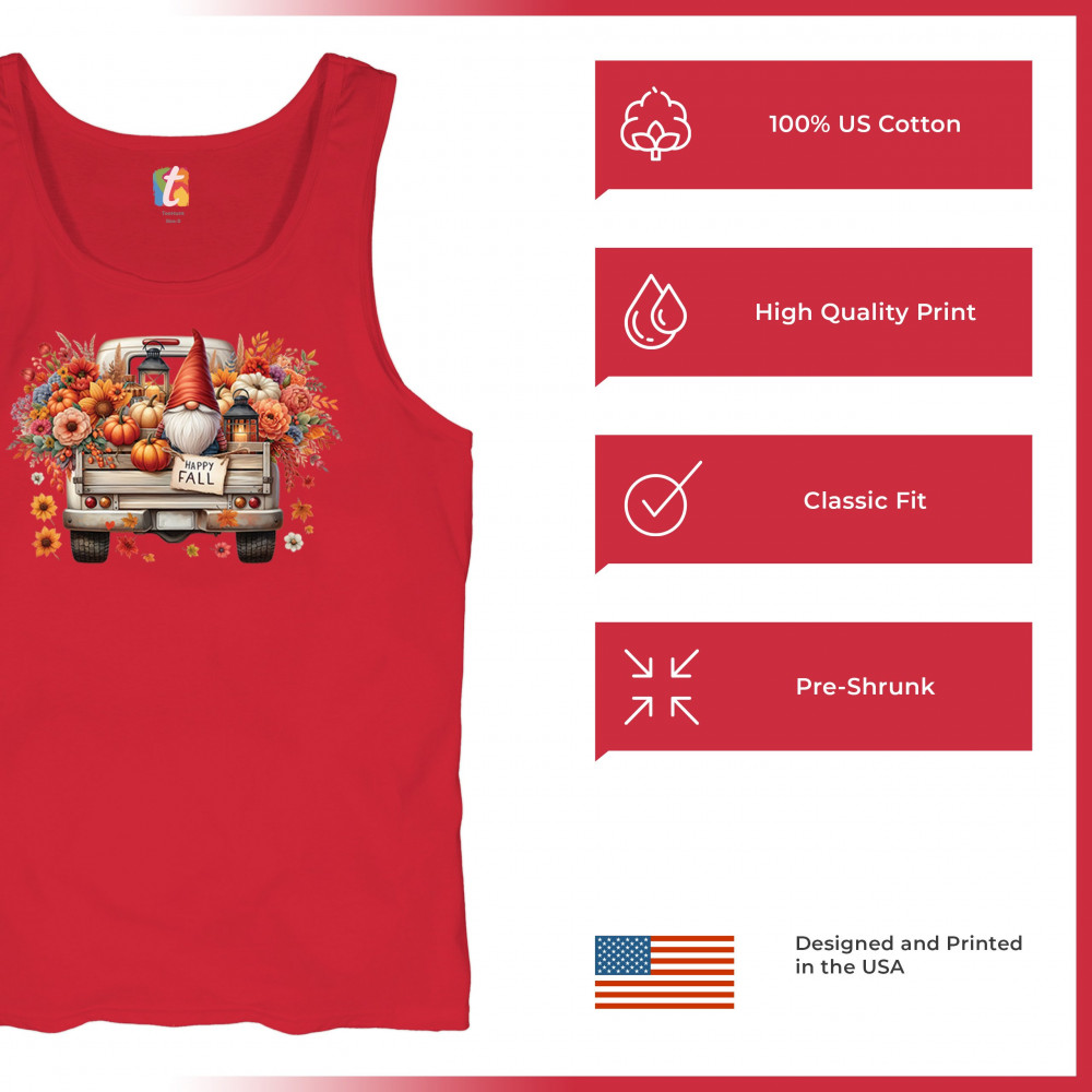 Rustic gnome truck design with pumpkins, wildflowers, and lantern glow. Perfect for Thanksgiving Day, farmhouse harvest, and cozy autumn style.